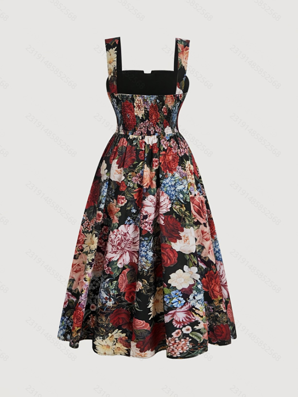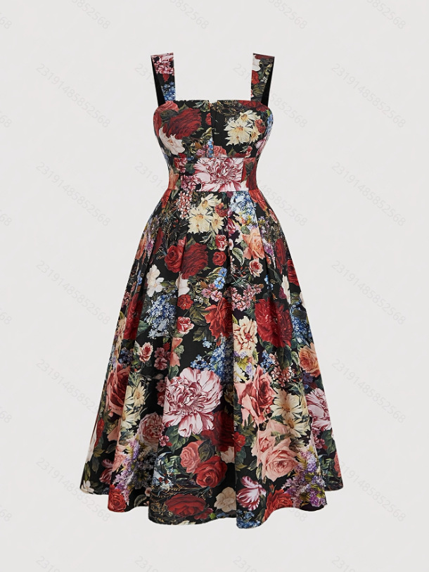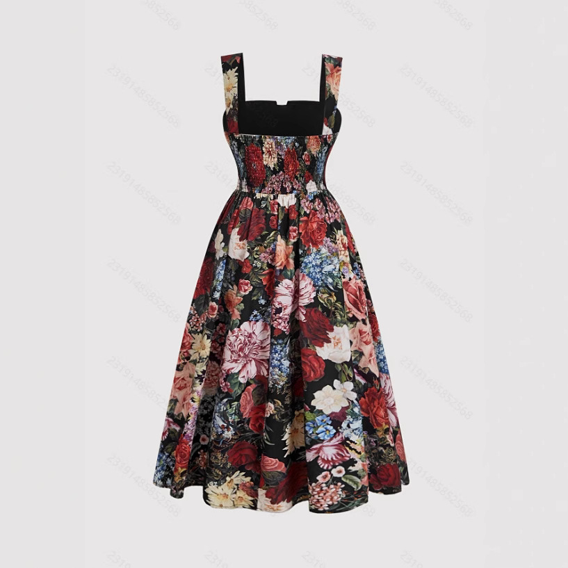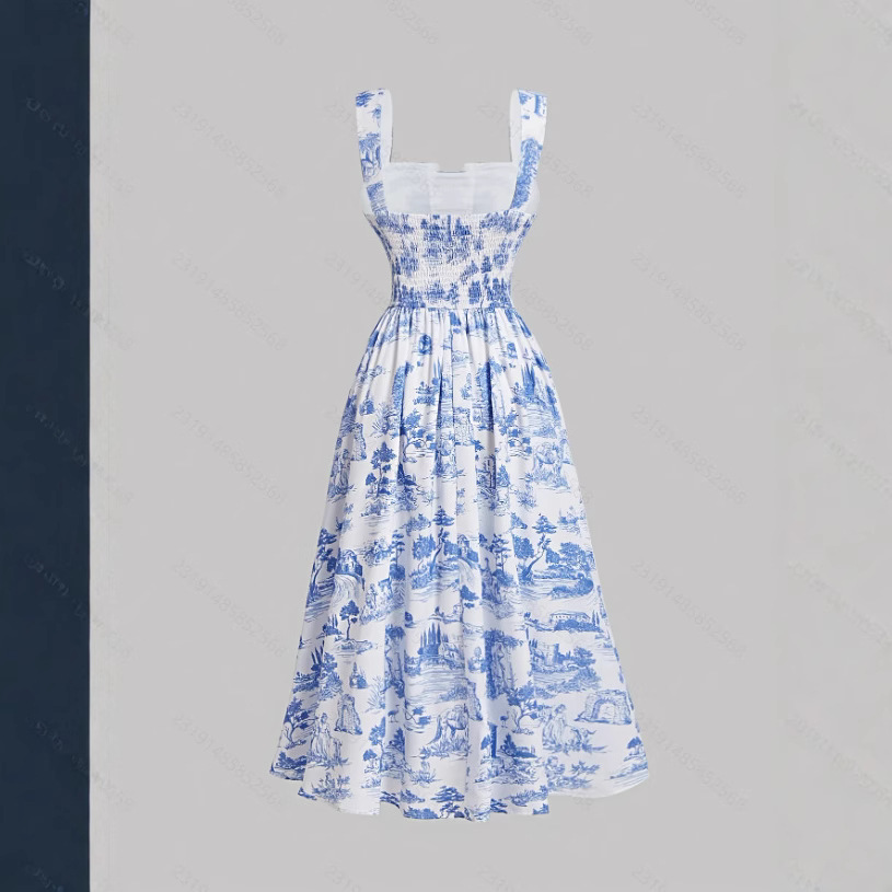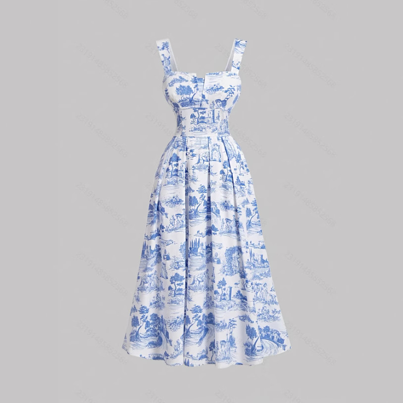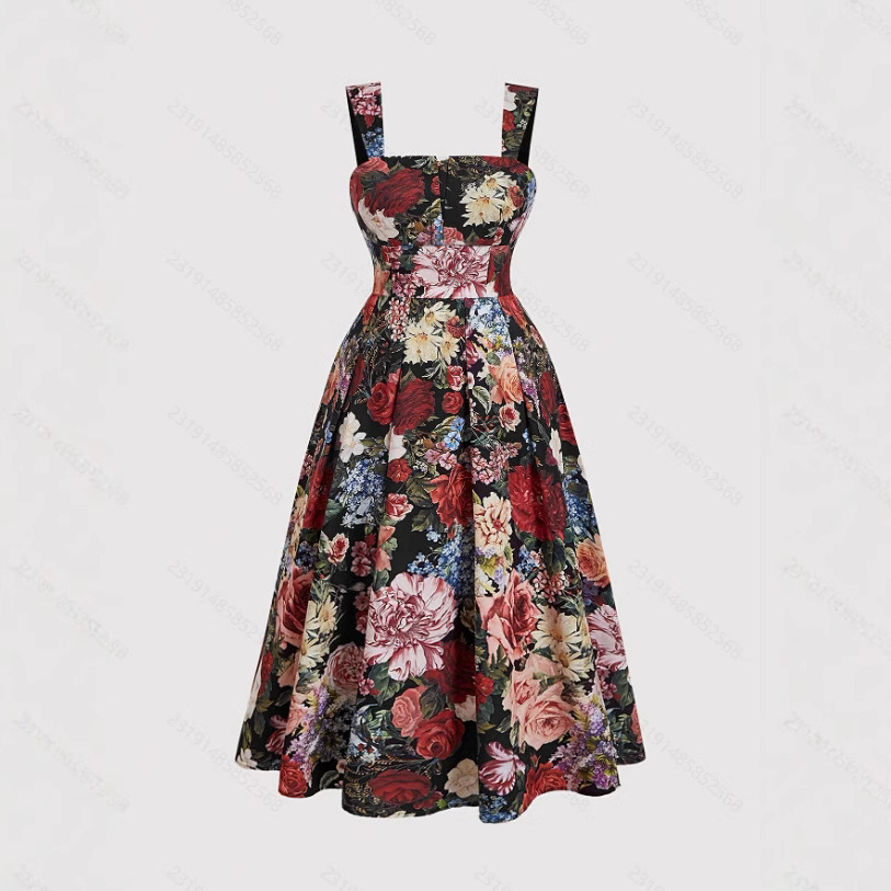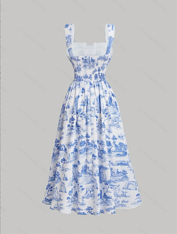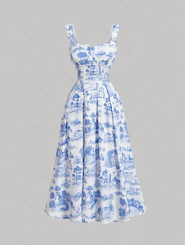 Women's Fashionable Slim-Fit Printed Strap Dress