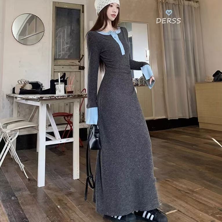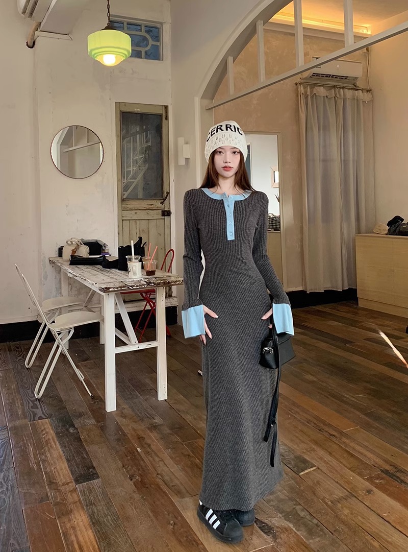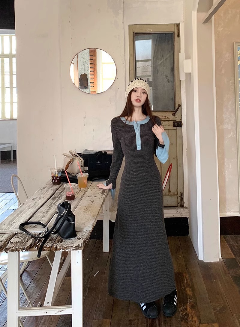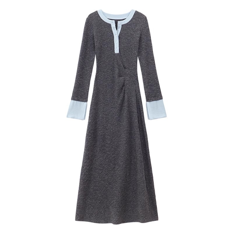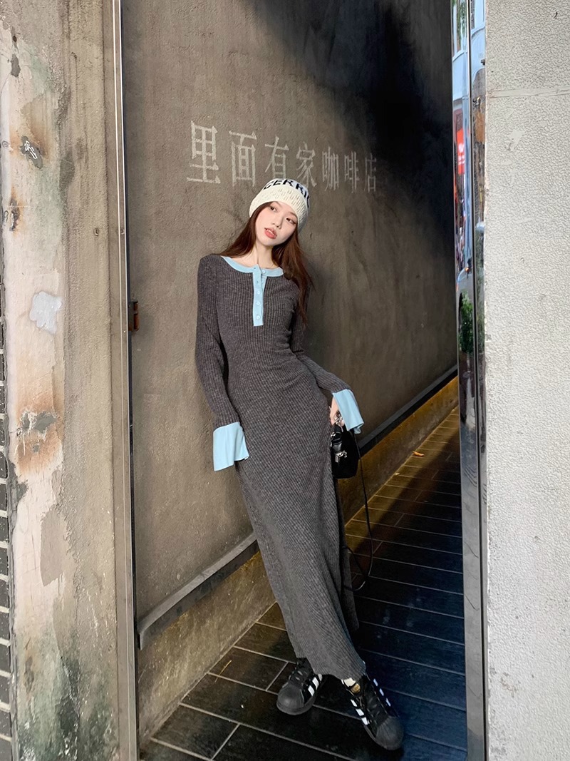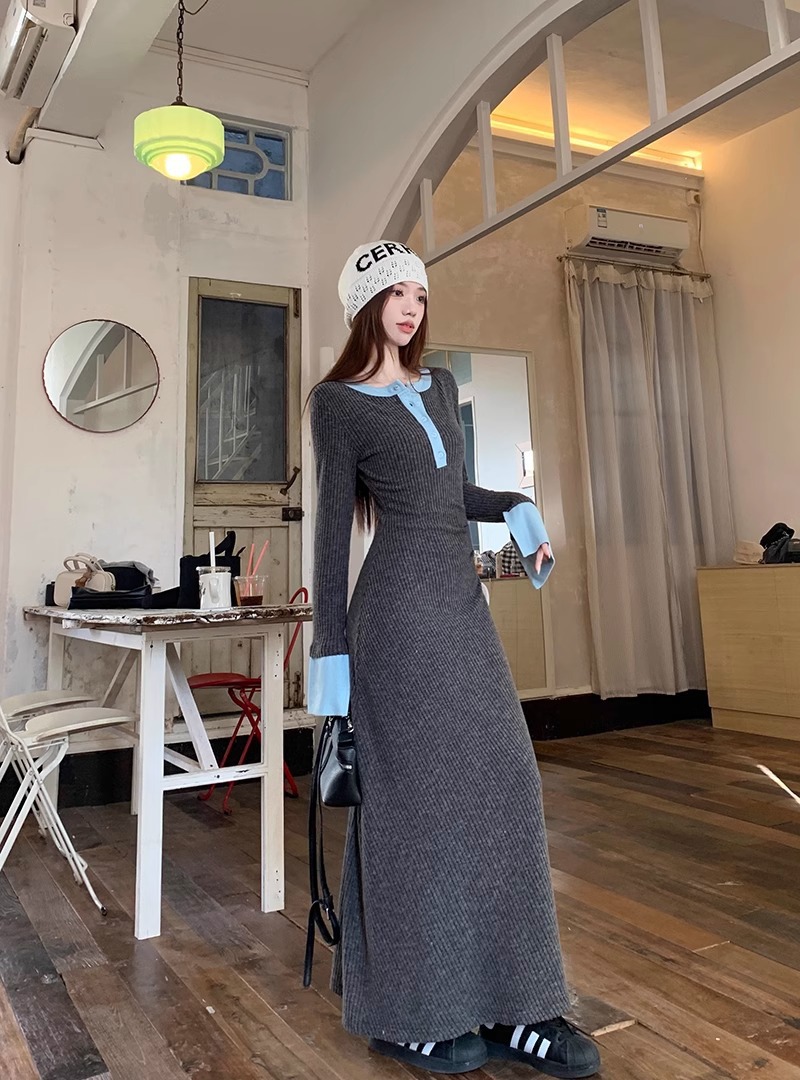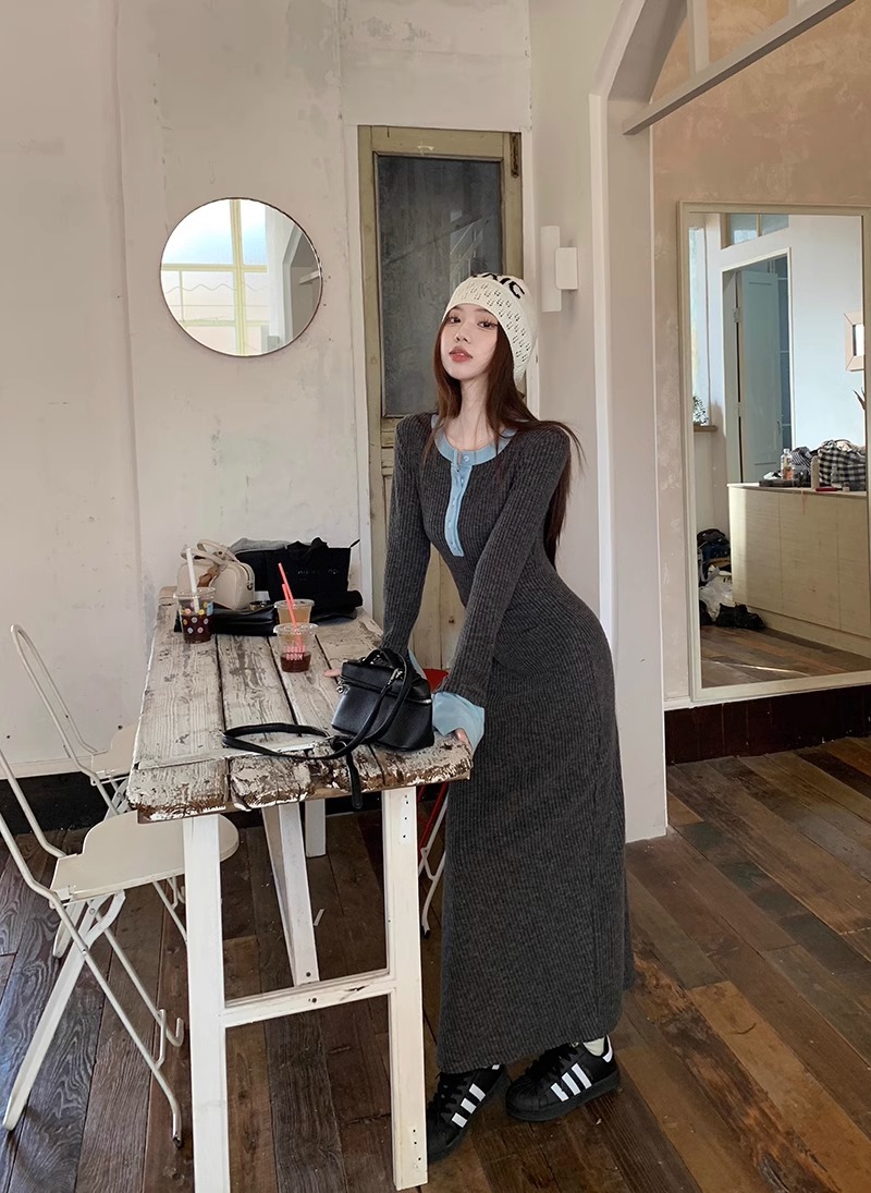 Womens Fashionable Slimming Patchwork Long-Sleeve Dress