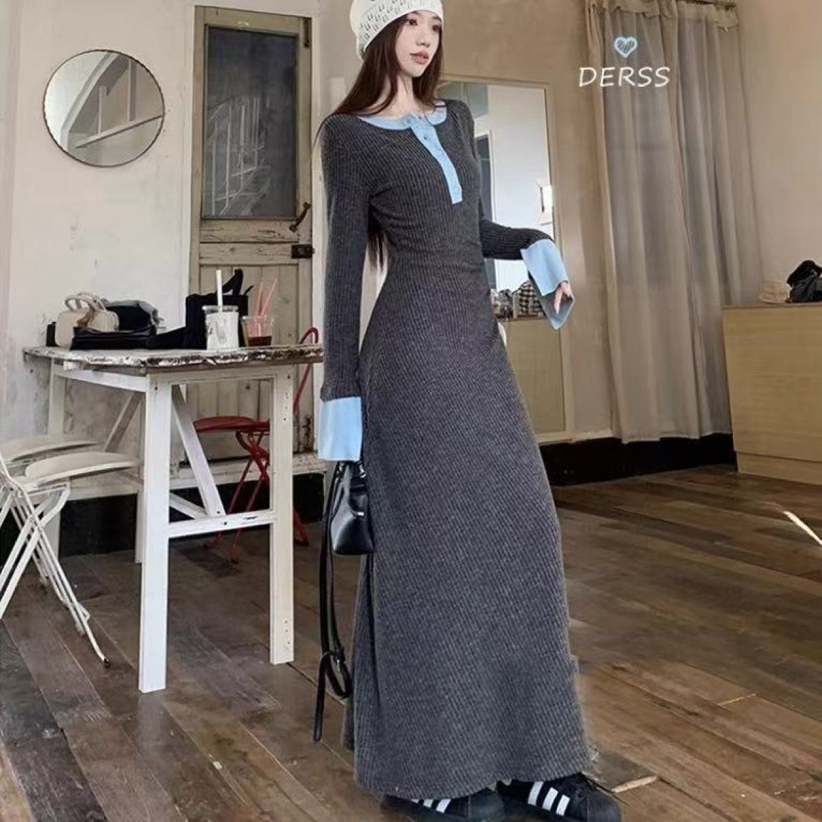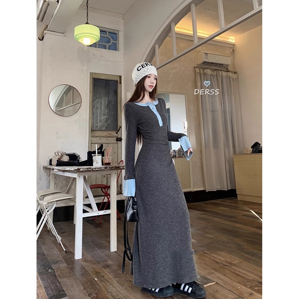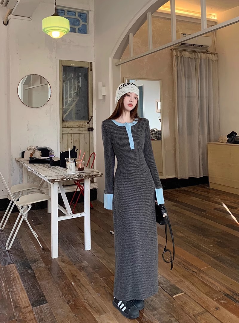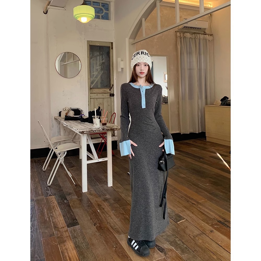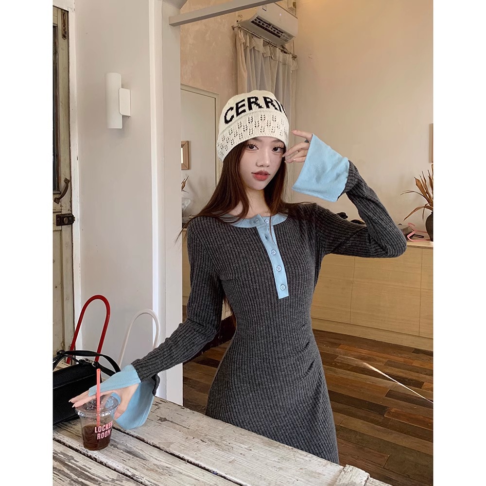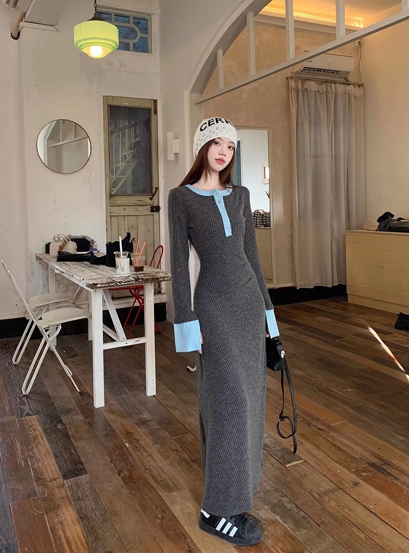 Womens Fashionable Slimming Patchwork Long-Sleeve Dress
