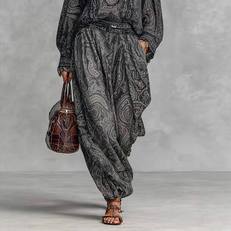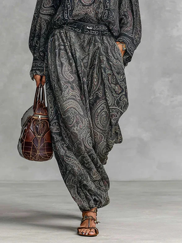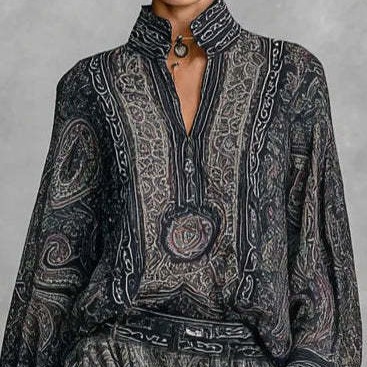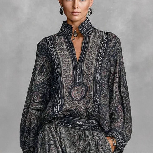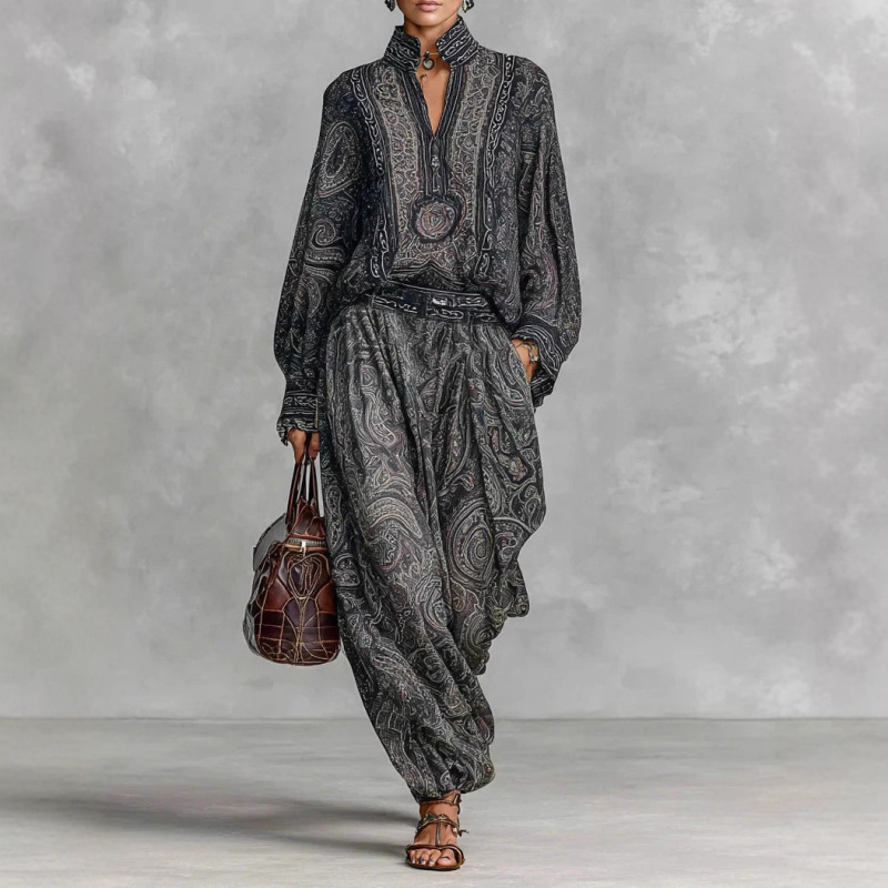 Womens Fashionable Vintage Floral Long-Sleeve Suit