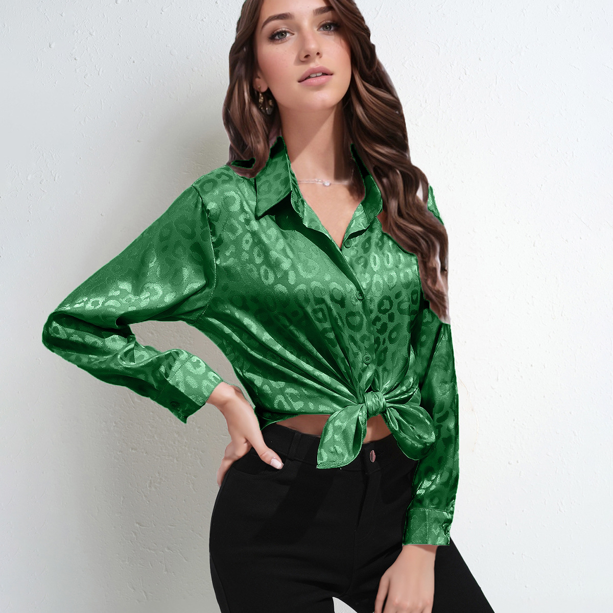 Women's Faux Silk Shirt Top Long Sleeve