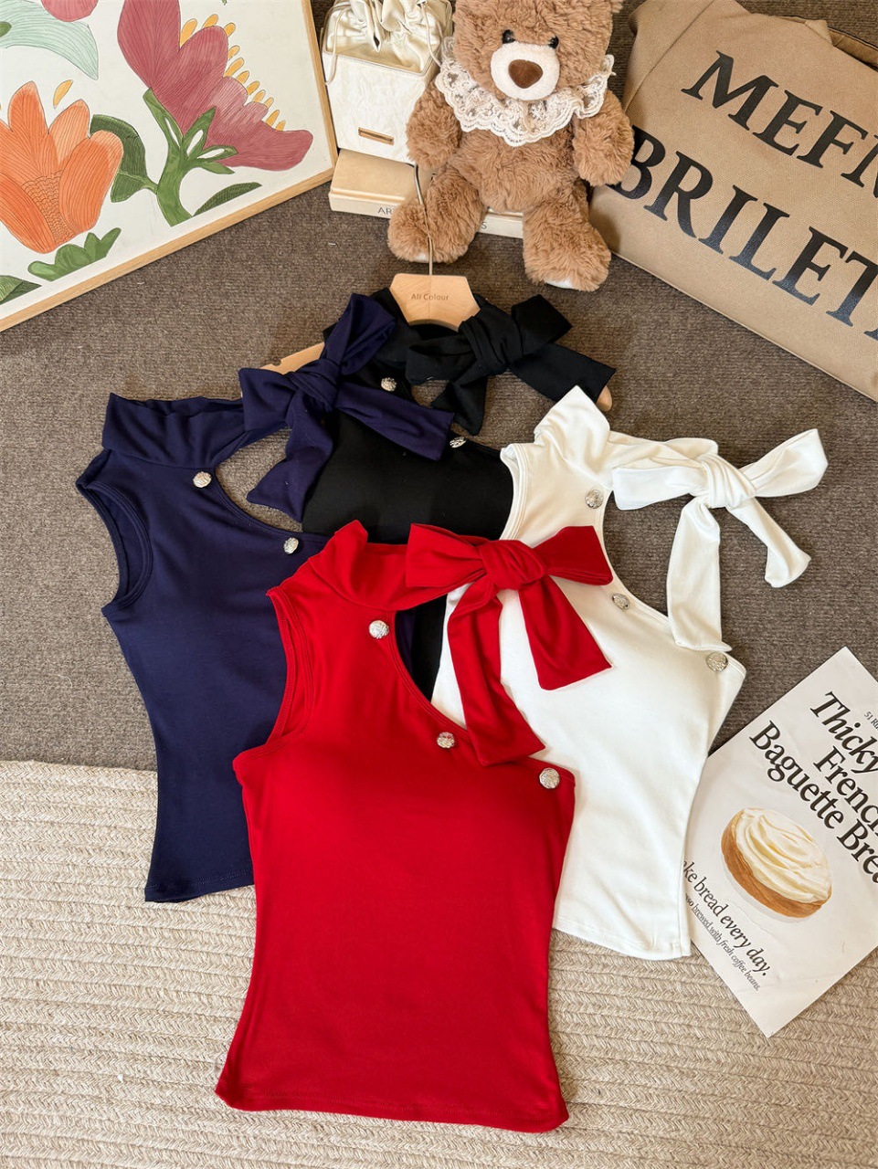 Colors: White, black, red, blue