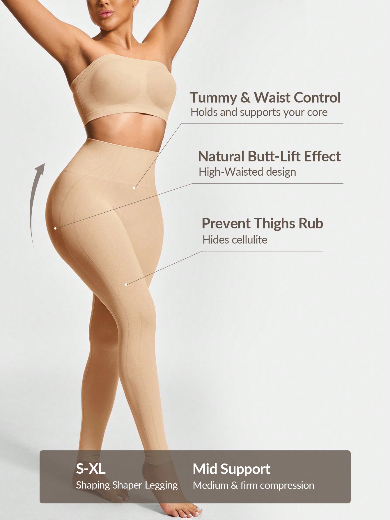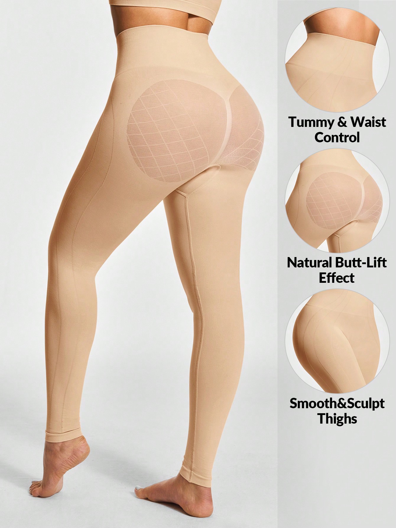 Full-length slim, tummy/thigh control, 3D butt lift, workout/daily wear