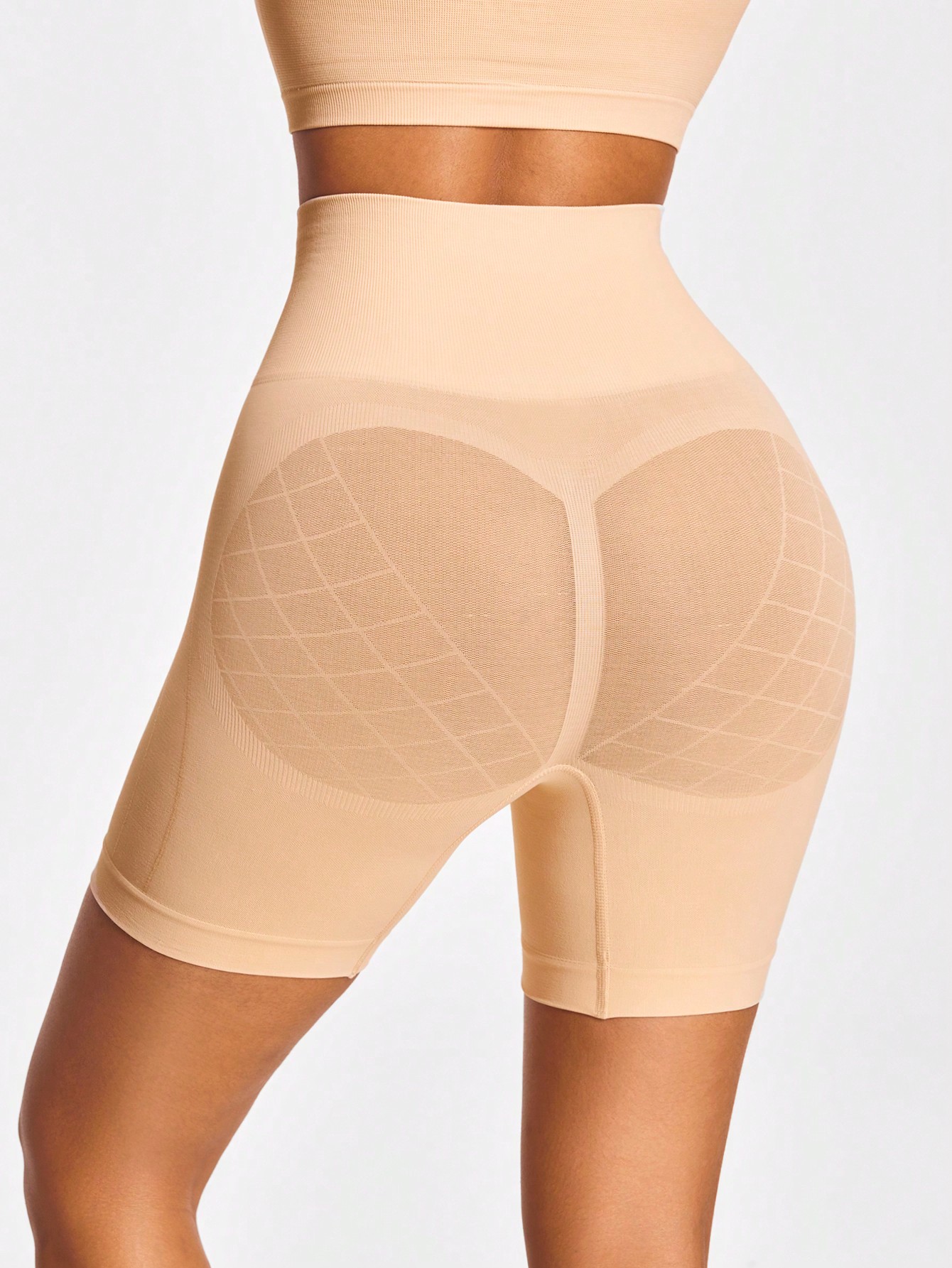 High-waisted, tummy/thigh control, 3D butt lift, non-roll waistband