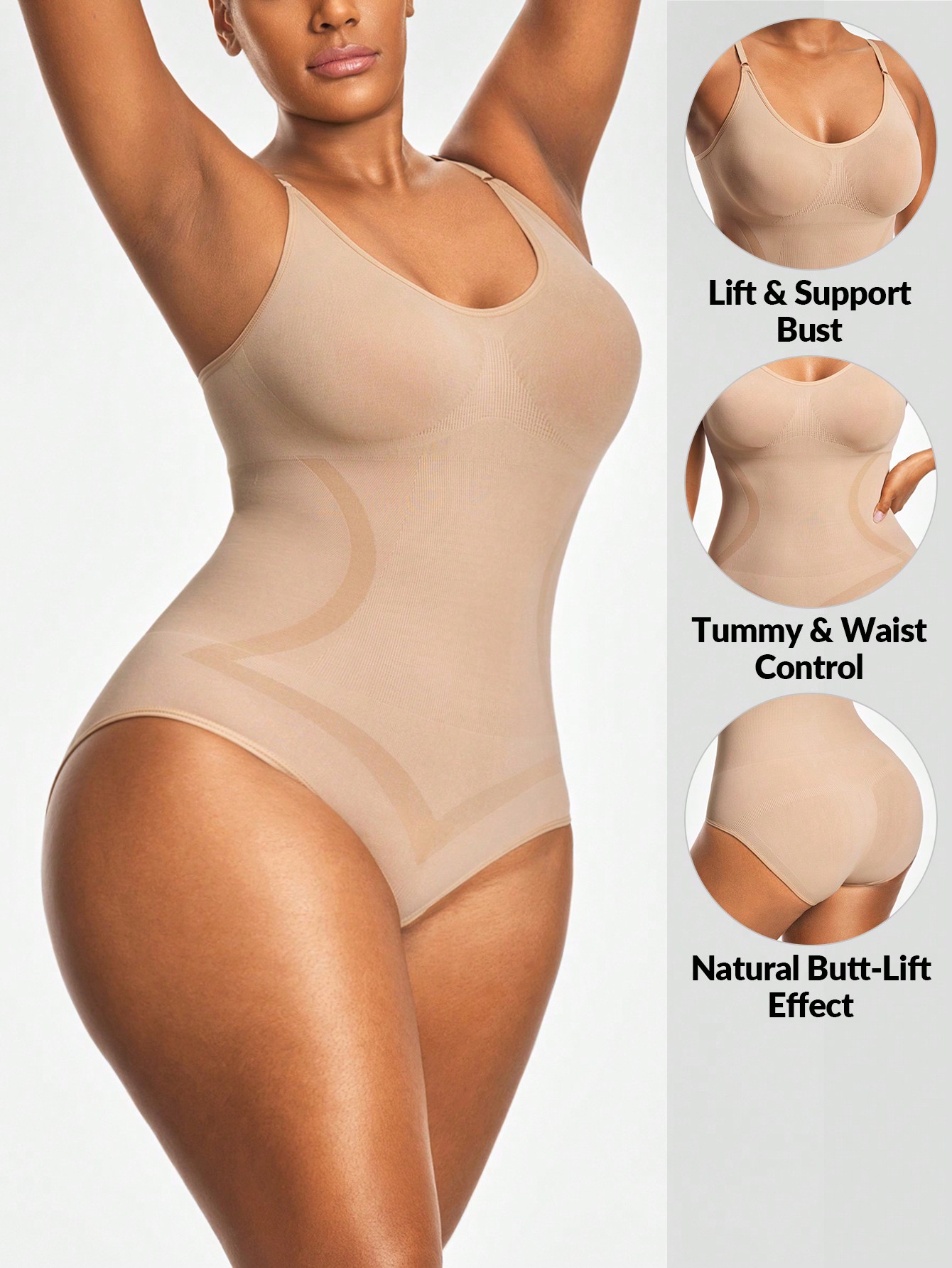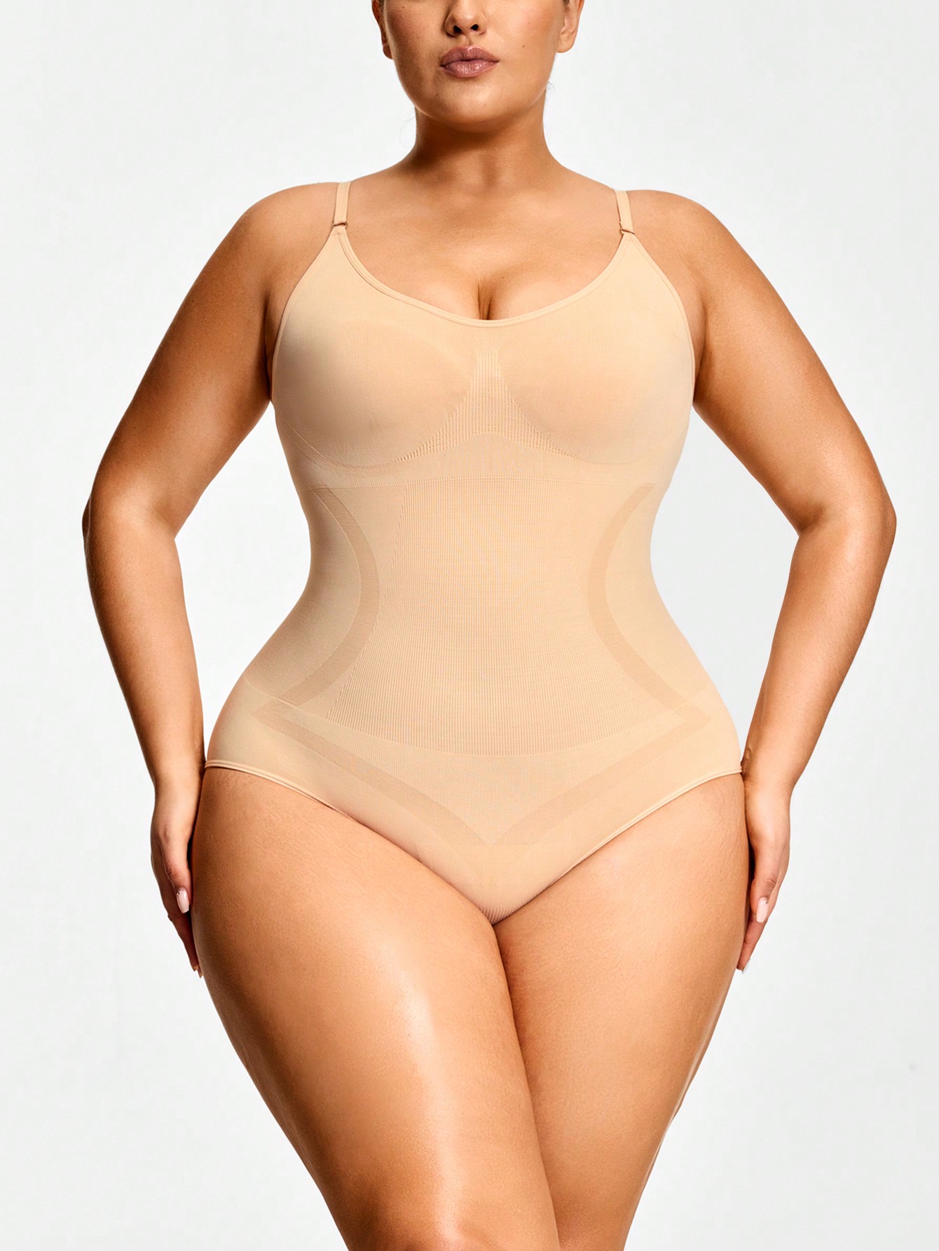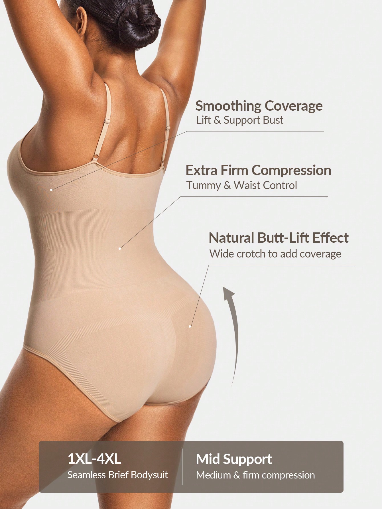 Firm compression, built-in bust support, waist/butt contour, versatile layering