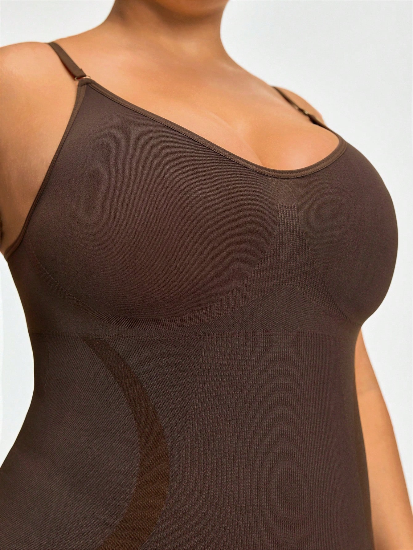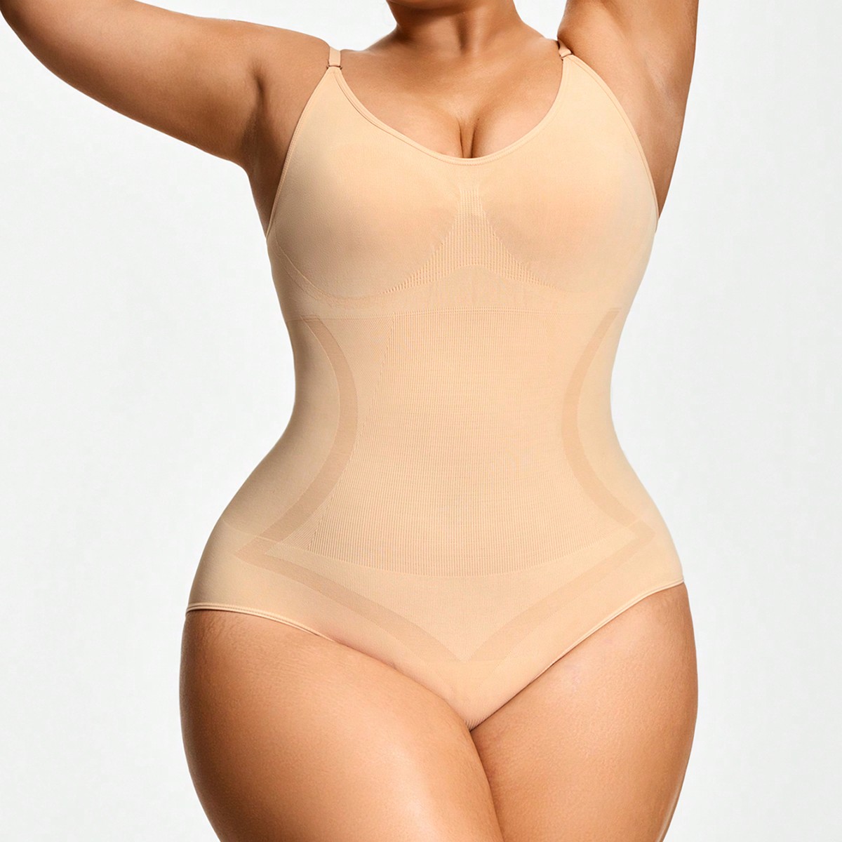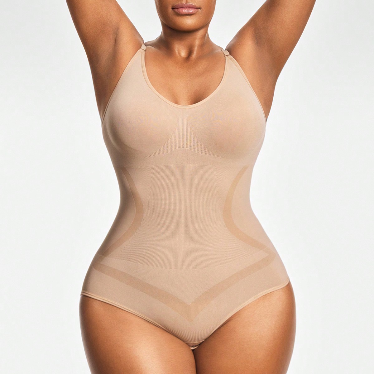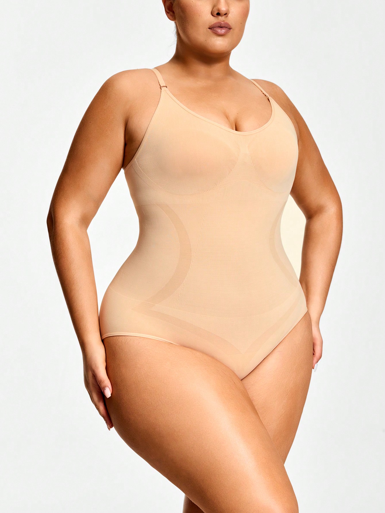 Firm compression, built-in bust support, waist/butt contour, versatile layering