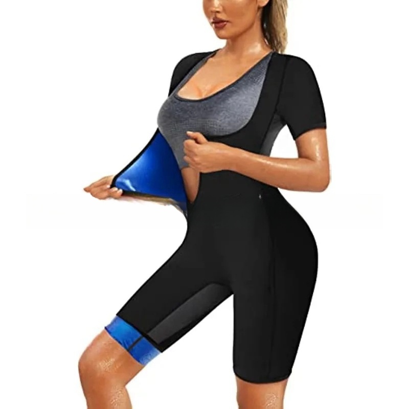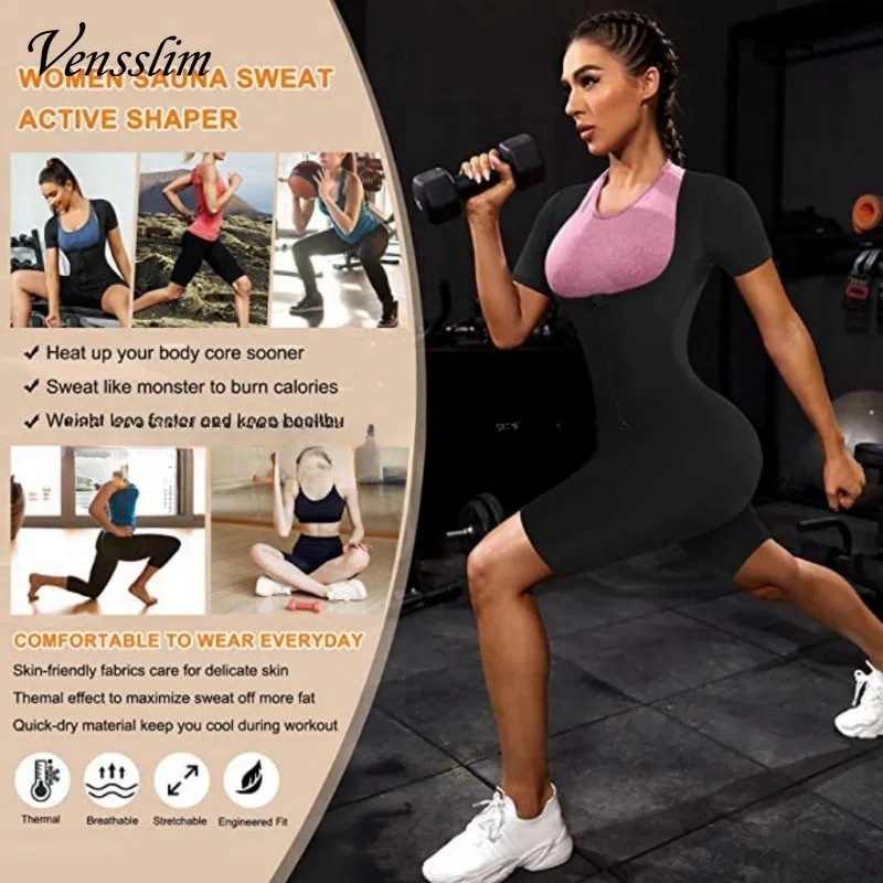 Women's Fitness Violently Sweat Suit Zipper Short Sleeve Burst Into Sweat Jumpsuit