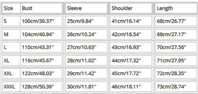 Size: small, medium, large, 2XL, 3XL, 4XL, 5XL