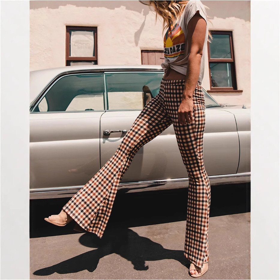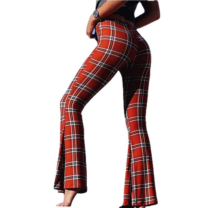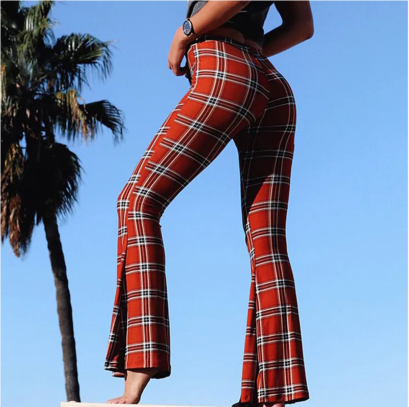 Womens Flare Pants High-Waisted Slim-Fit Trousers Printed Wide-Leg Pants