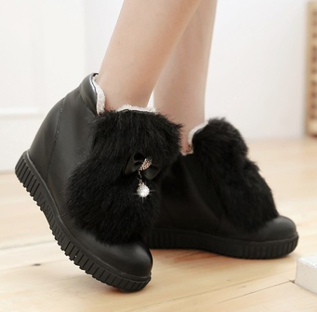 Women's Flat Bowknot Shaggy White Snow Boots
