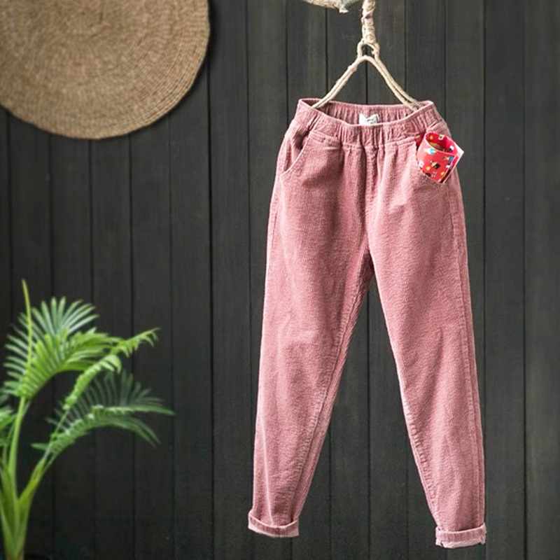 Women's Fleece-lined Thick Corduroy Retro Simple Warm Pants