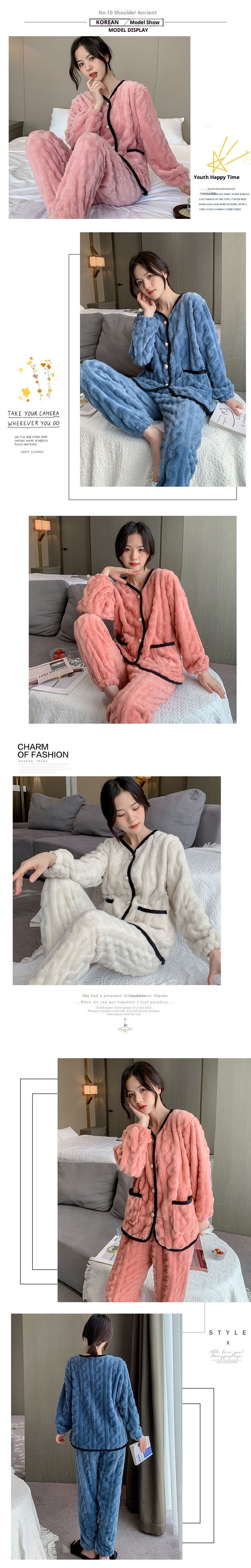 Women's Fleece-lined Thick Warm Coral Fleece Pajamas