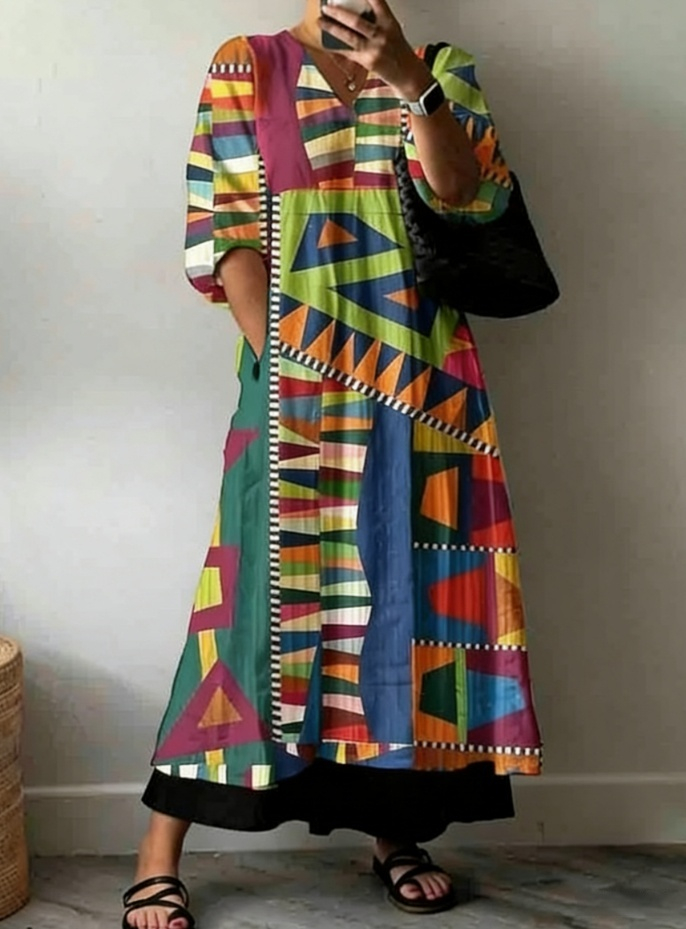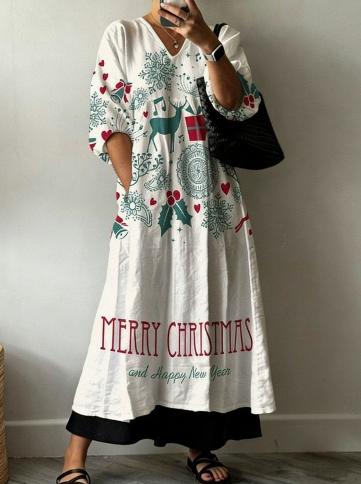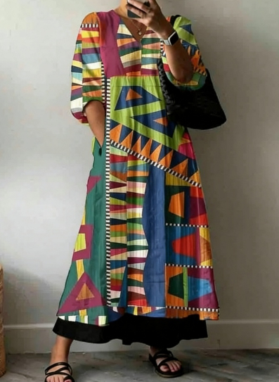 Womens Floral Print V-Neck Dress