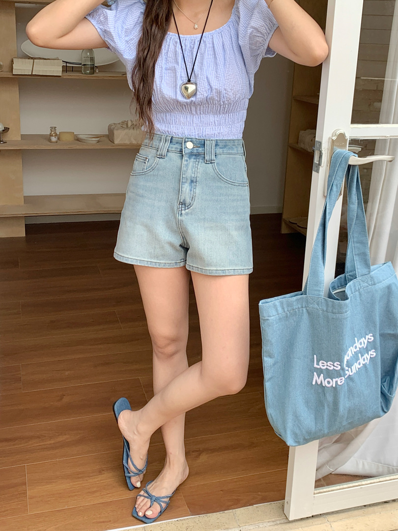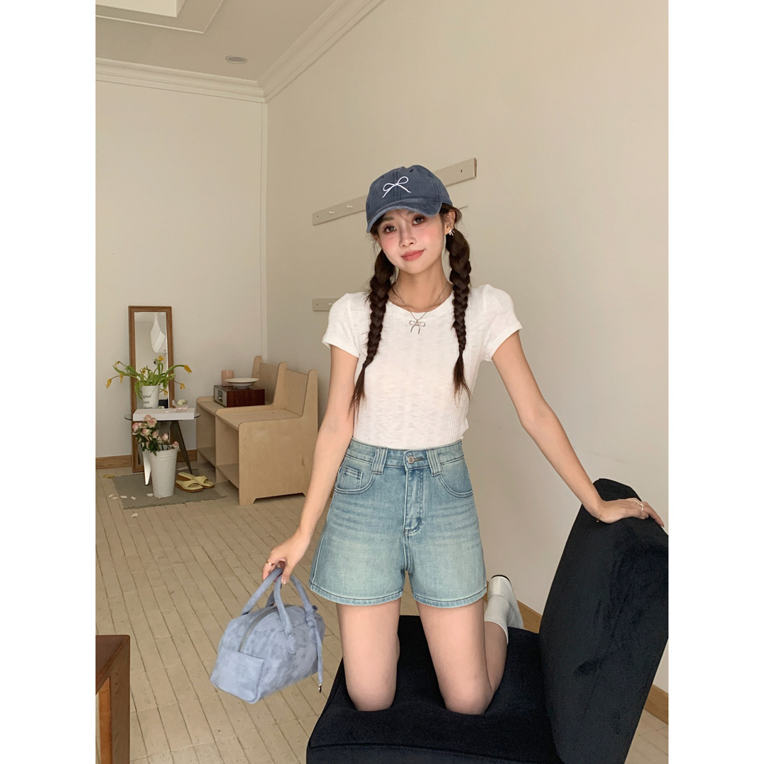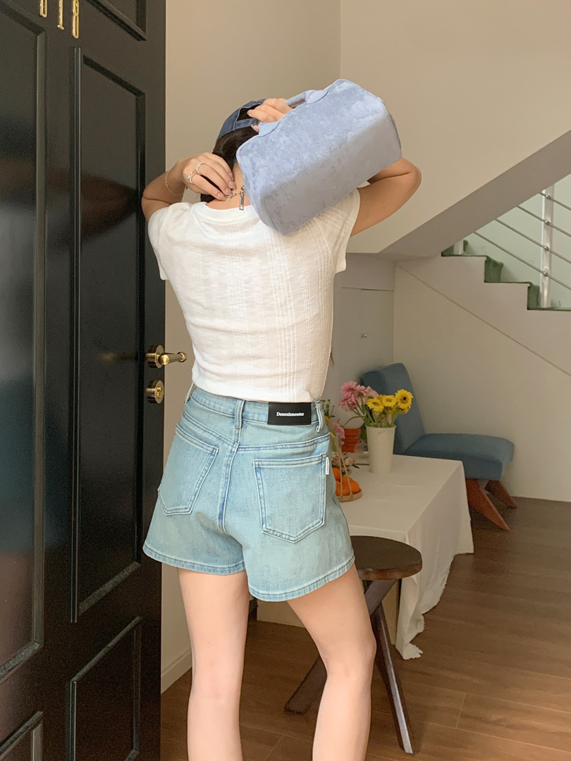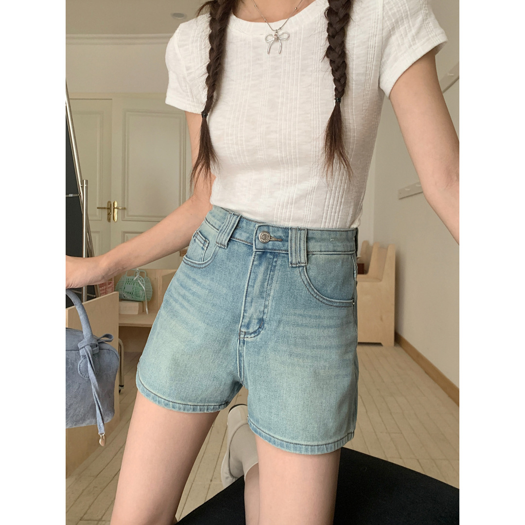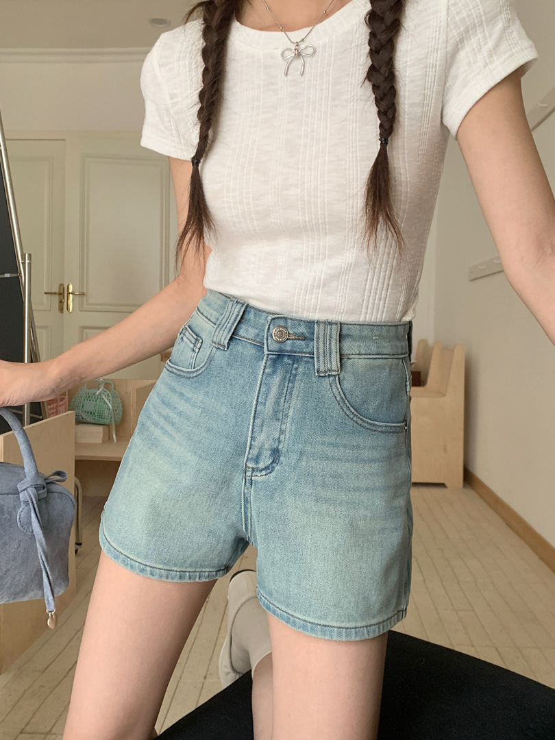 Women's Four Sided Elastic Light Colored High Waisted Denim Shorts