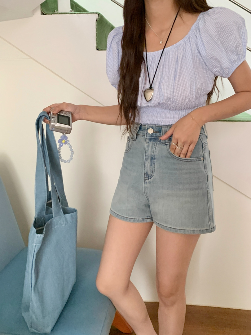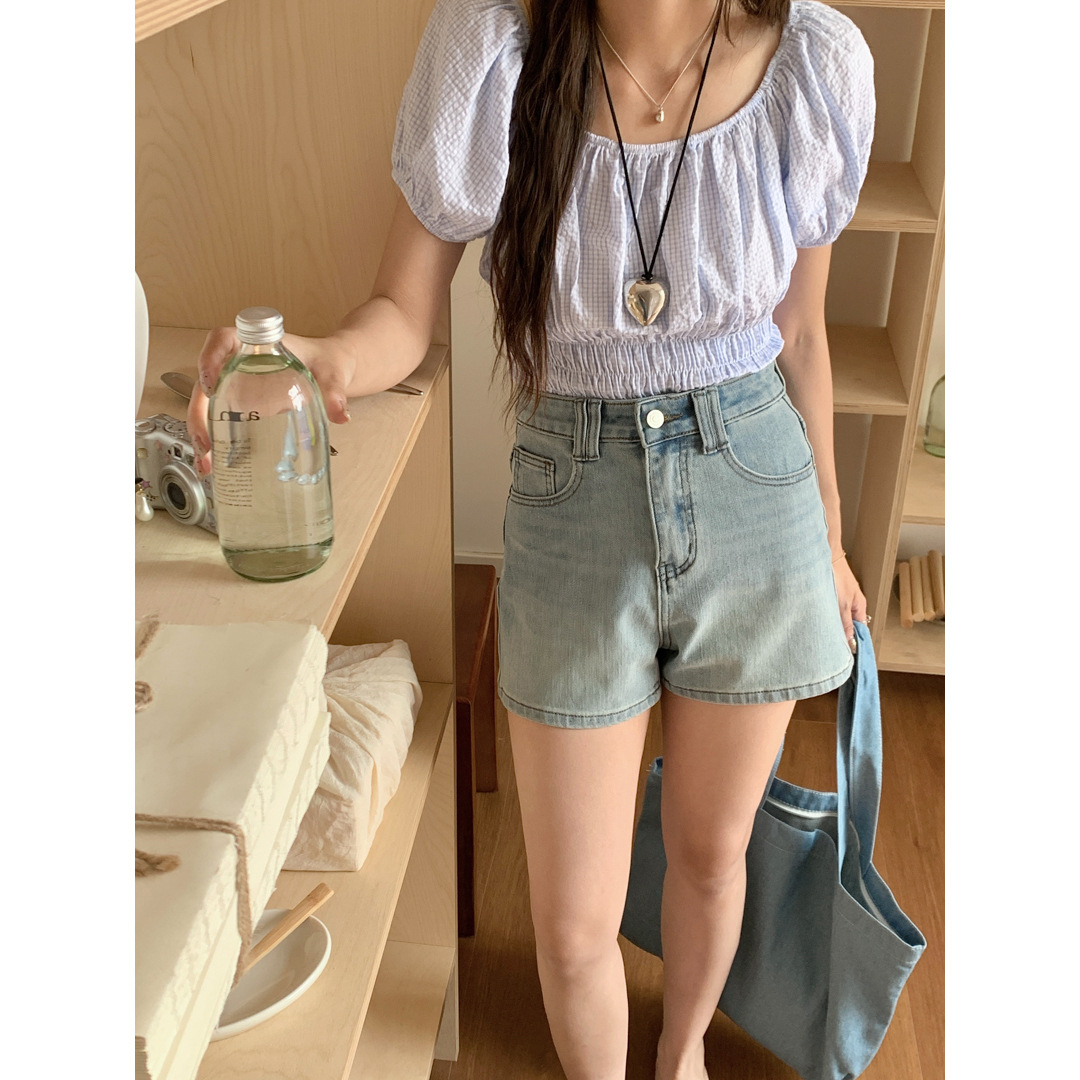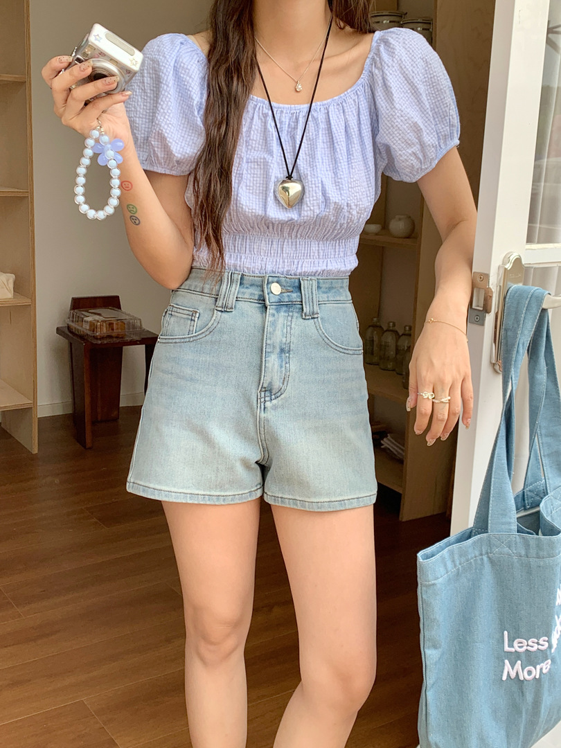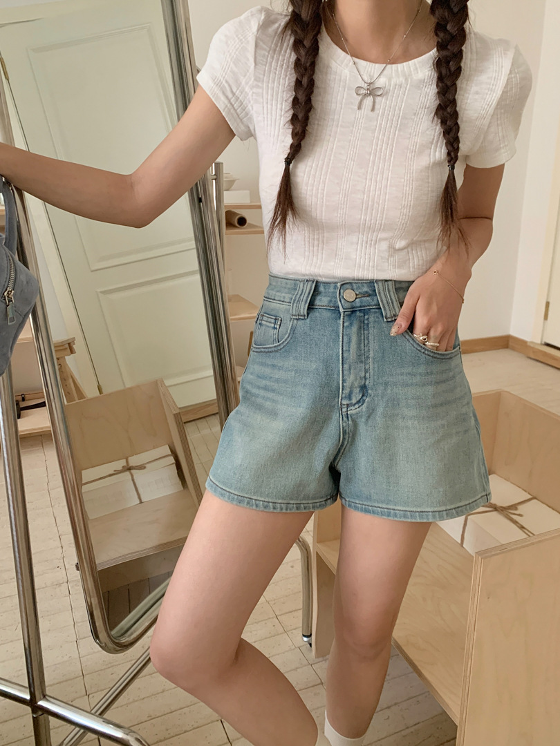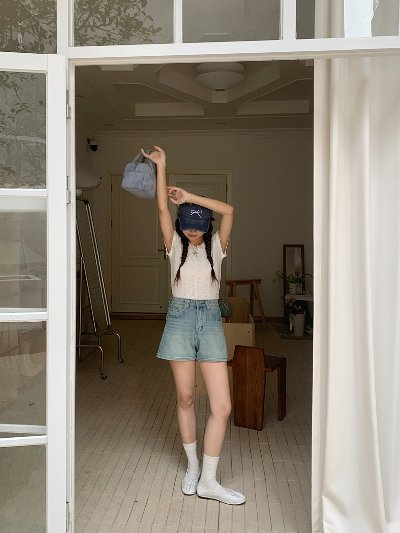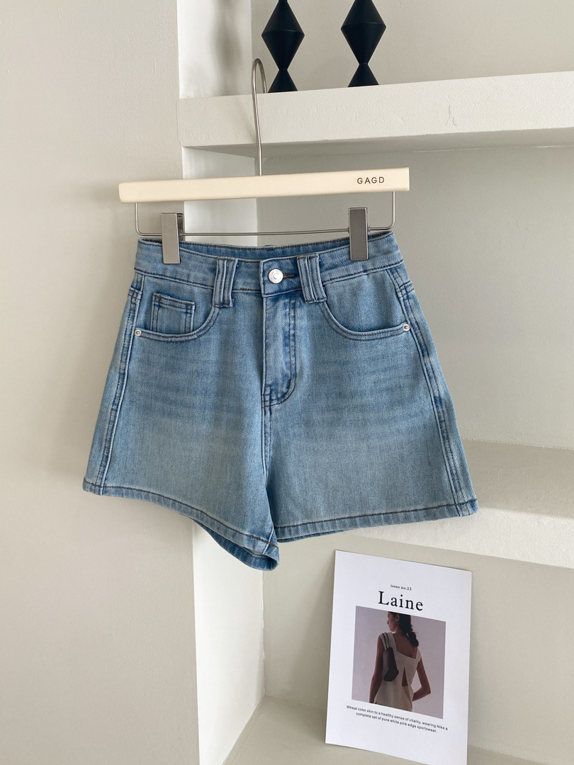 Women's Four Sided Elastic Light Colored High Waisted Denim Shorts