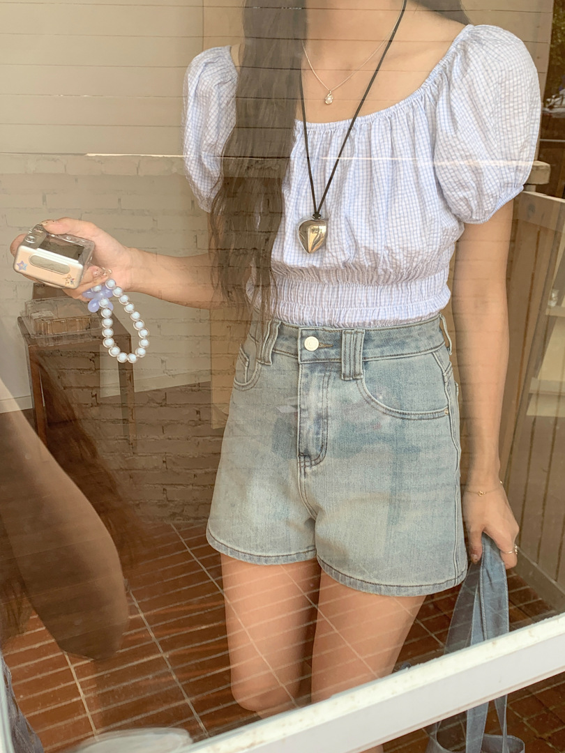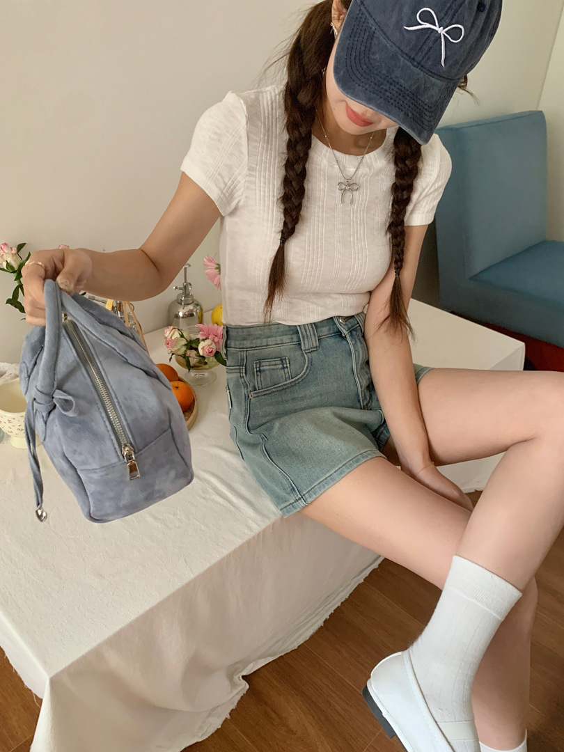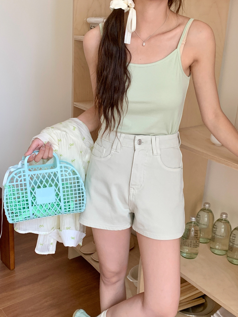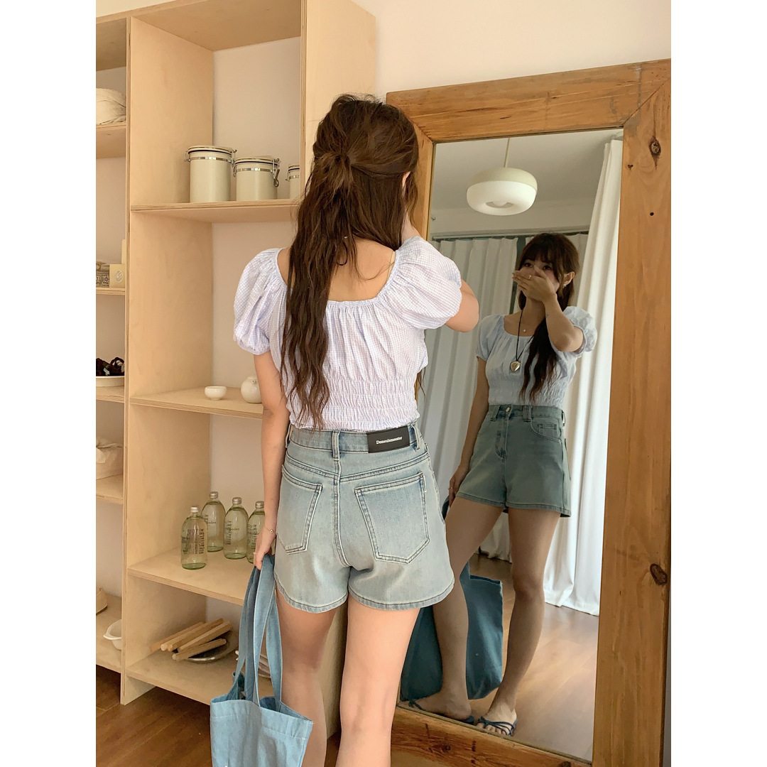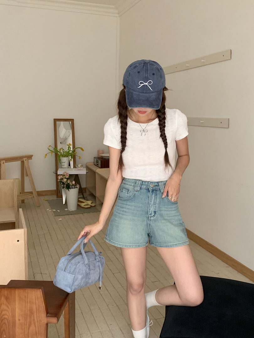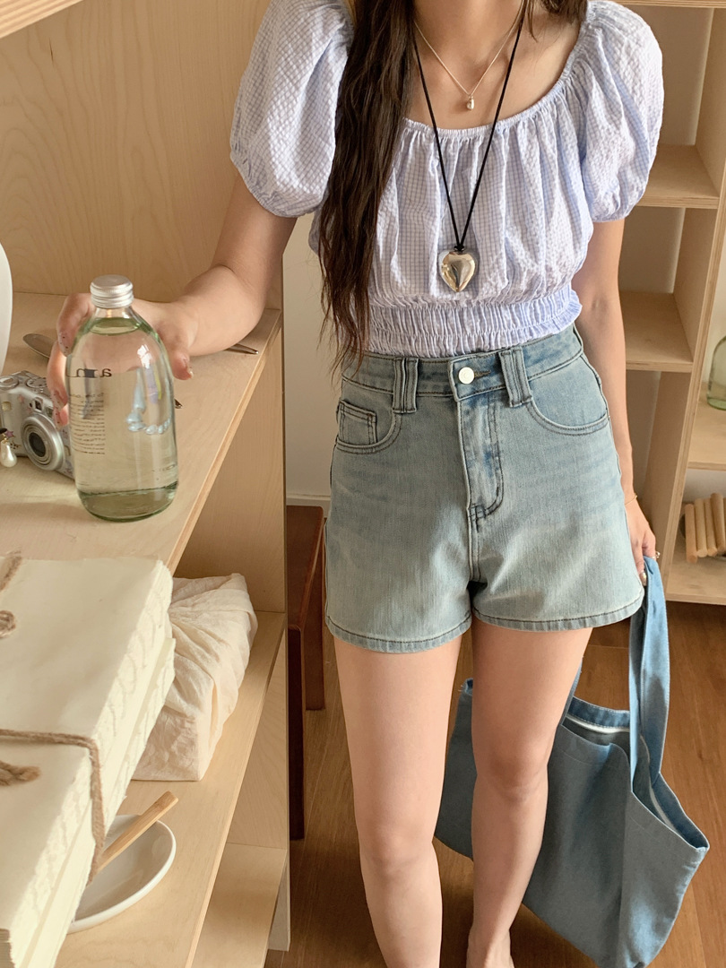 Women's Four Sided Elastic Light Colored High Waisted Denim Shorts