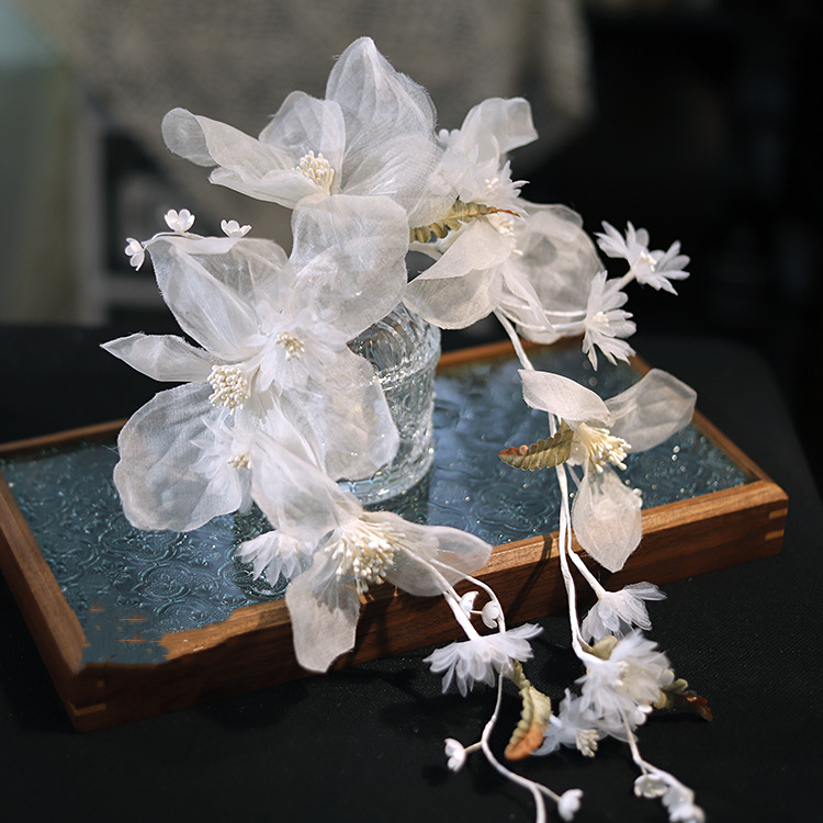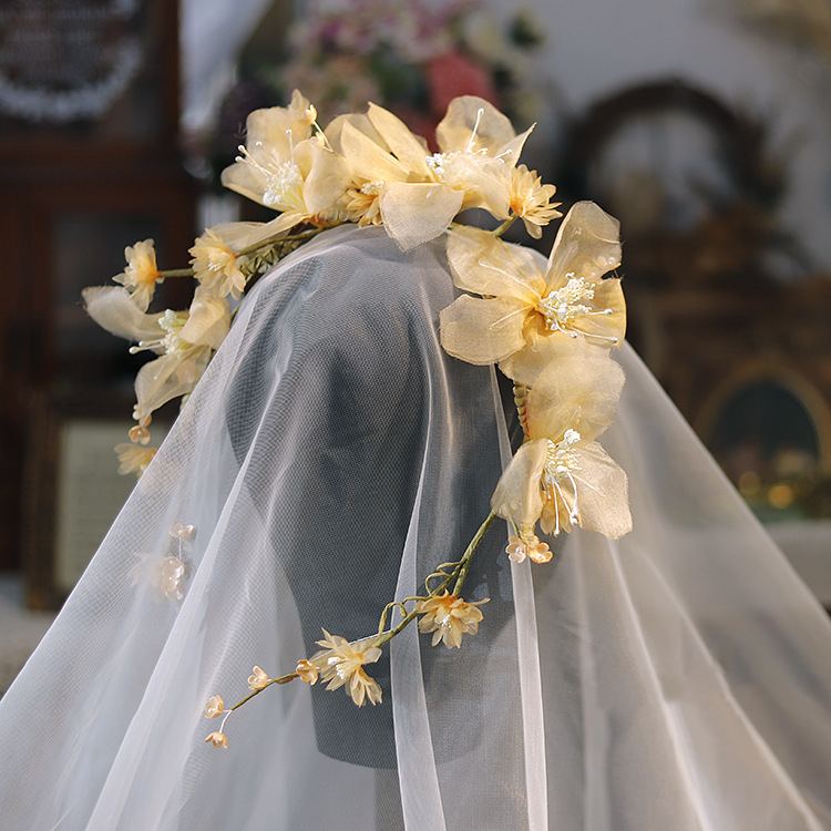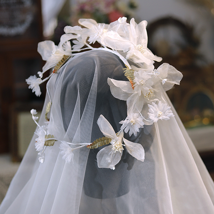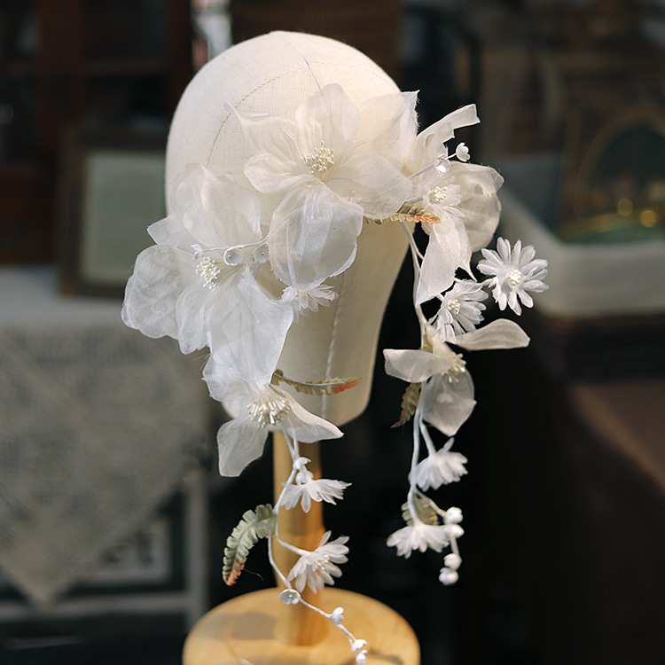 Color: White silk flower lily of the valley vine headdress, champagne flower lily of the valley vine headdress