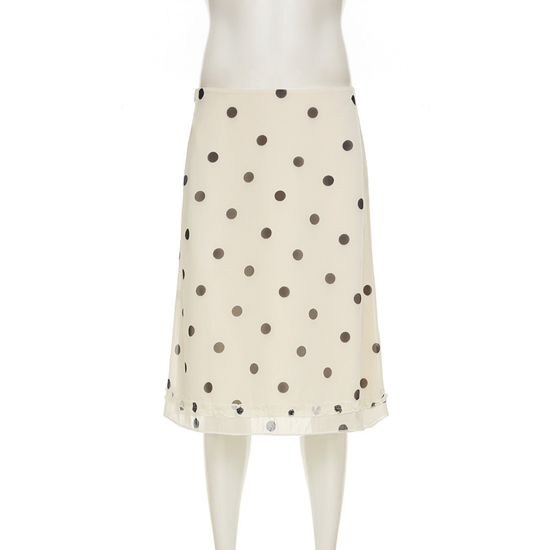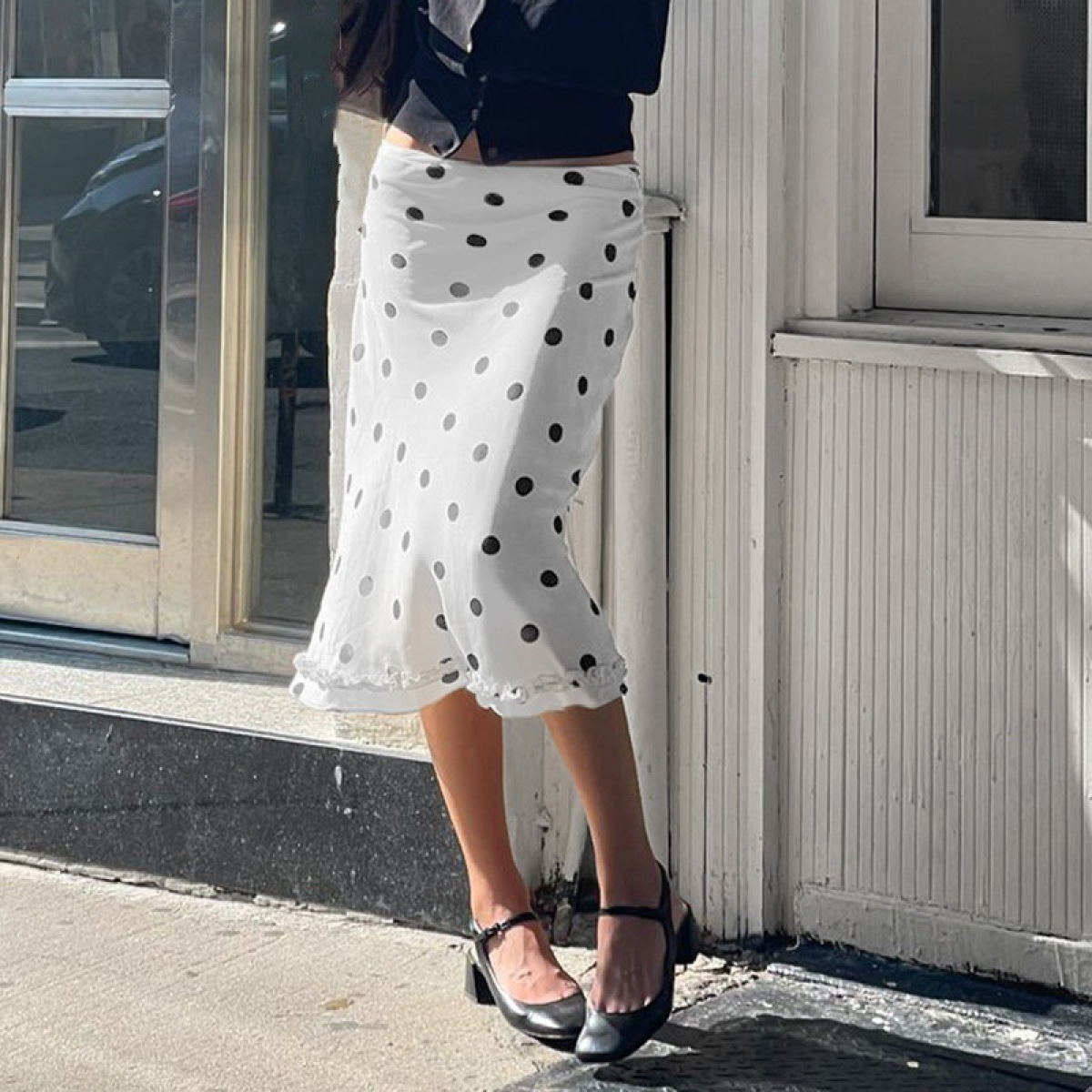 Women's French-style Color Matching Polka Dot Side Zipper Pleated Hip Skirt