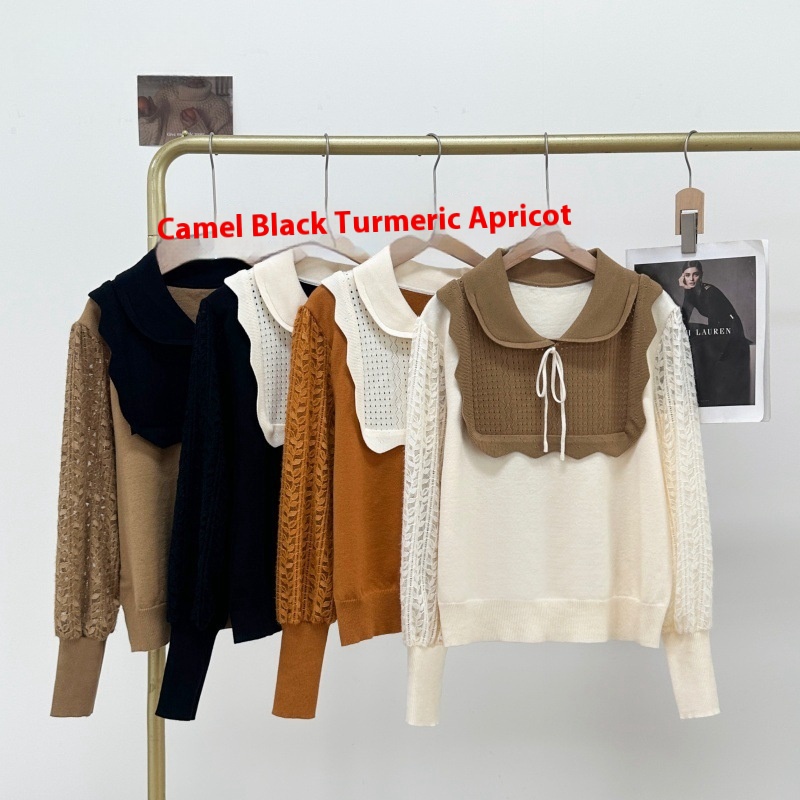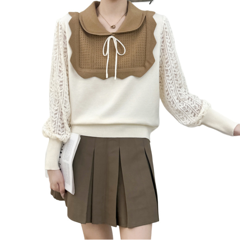 Women's French-style Contrast Color Long Sleeves Knitted Top