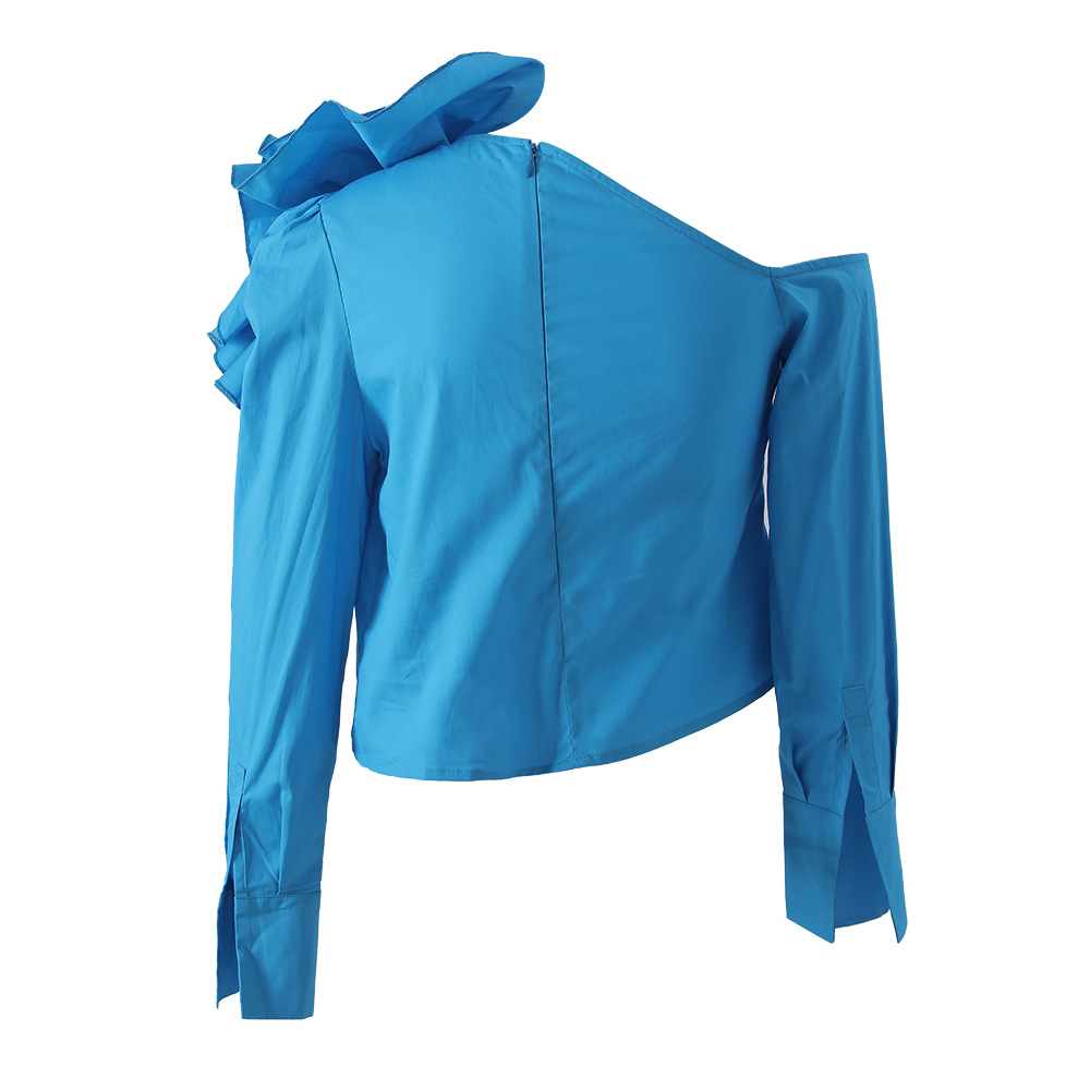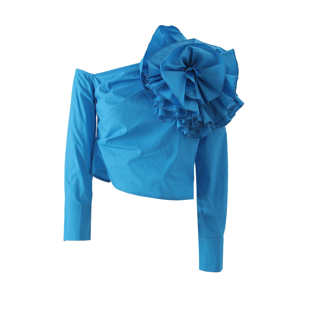 Women's French-style Designer Shirt With Three-dimensional Large Floral Motif