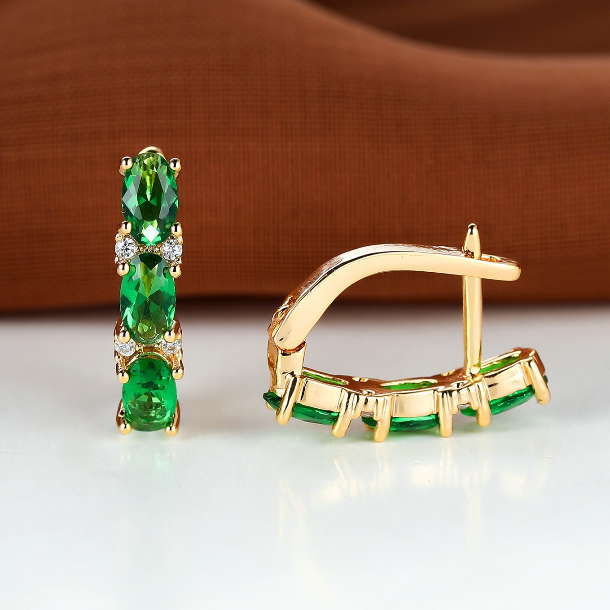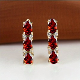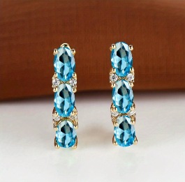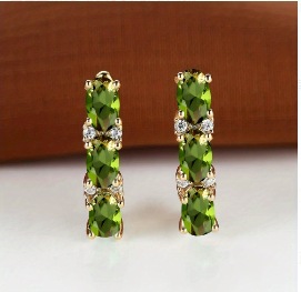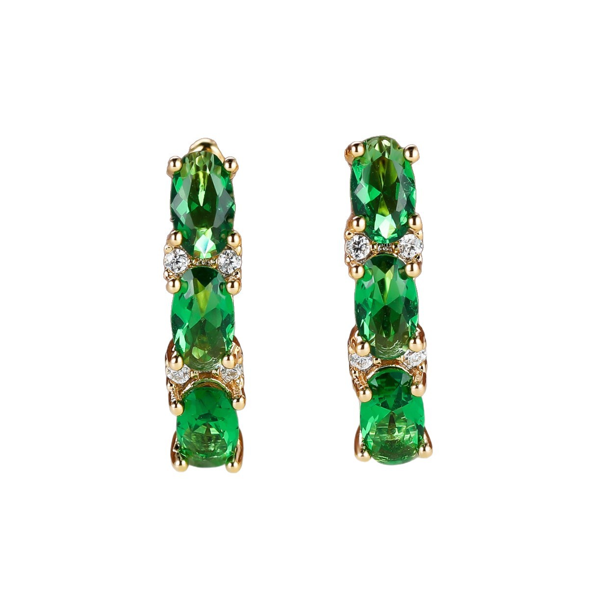 Womens French-Style Light-Luxury Gold Three-Row Oval Diamond Earrings