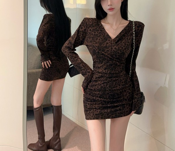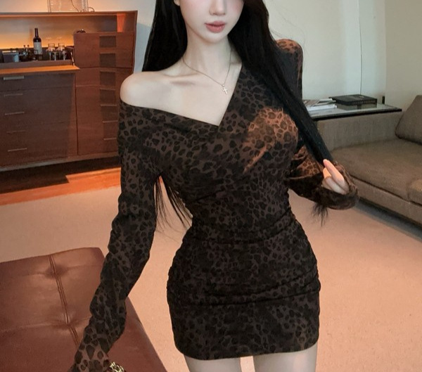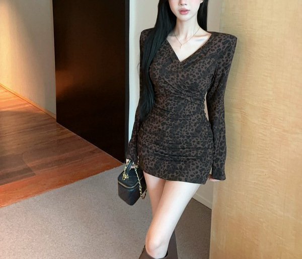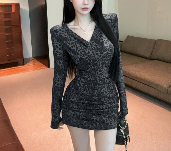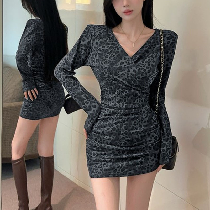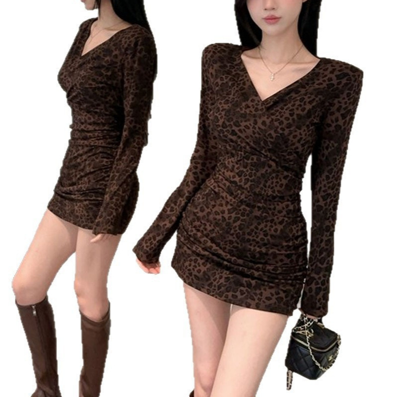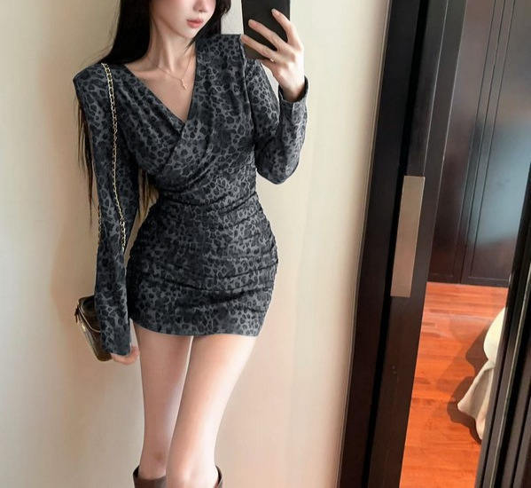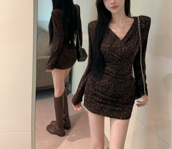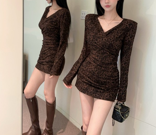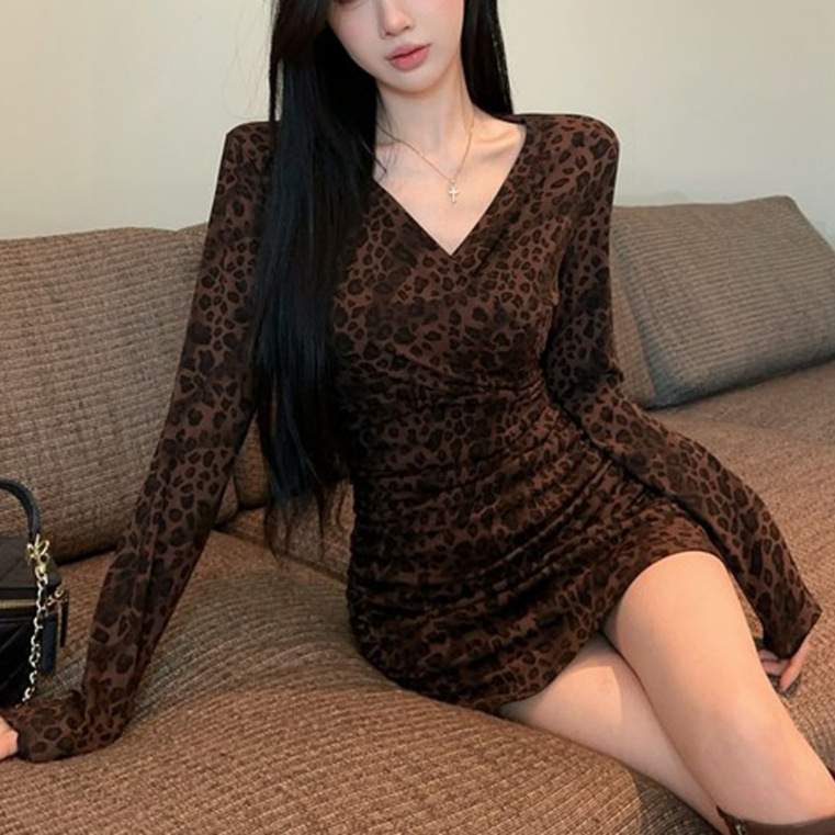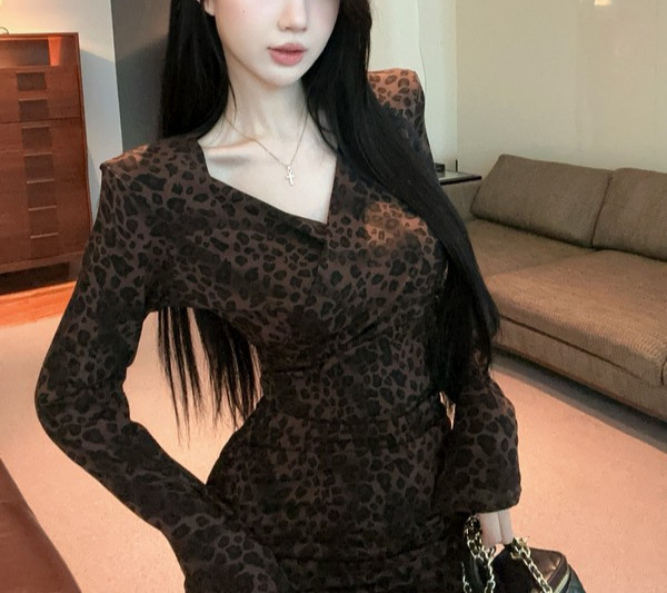 Color: Leopard-print coffee long-sleeve skirt, leopard-print gray long-sleeve skirt