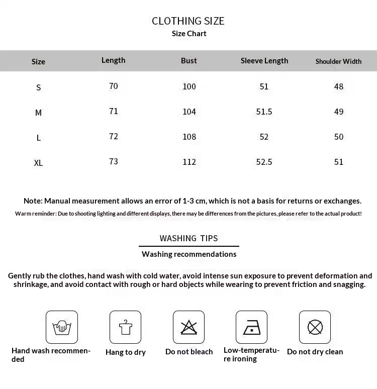 1. Asian sizes are 1 to 2 sizes smaller than European and American people. Choose the larger size if your size between two sizes. Please allow 2-3cm differences due to manual measurement. 2. Please check the size chart carefully before you buy the item, if you don't know how to choose size, please contact our customer service. 3.As you know, the different computers display colors differently, the color of the actual item may vary slightly from the following images.
