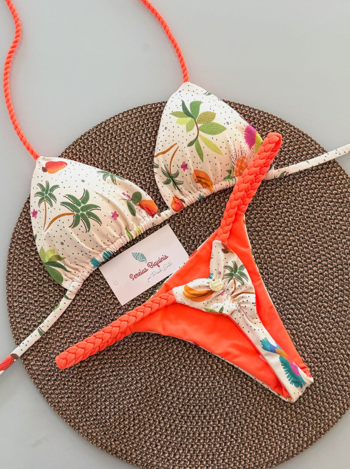 Colors: Orange Coconut Tree, Tropical Leaves, Green, Blue Coconut Tree, Blue + Orange