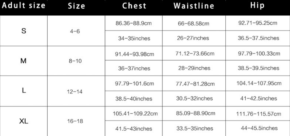 Note:1. Asian sizes are 1 to 2 sizes smaller than European and American people. Choose the larger size if your size between two sizes. Please allow 2-3cm differences due to manual measurement. 2. Please check the size chart carefully before you buy the item, if you don't know how to choose size, please contact our customer service. 3.As you know, the different computers display colors differently, the color of the actual item may vary slightly from the following images.