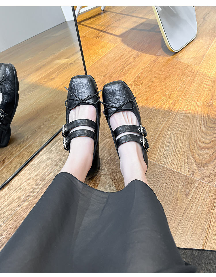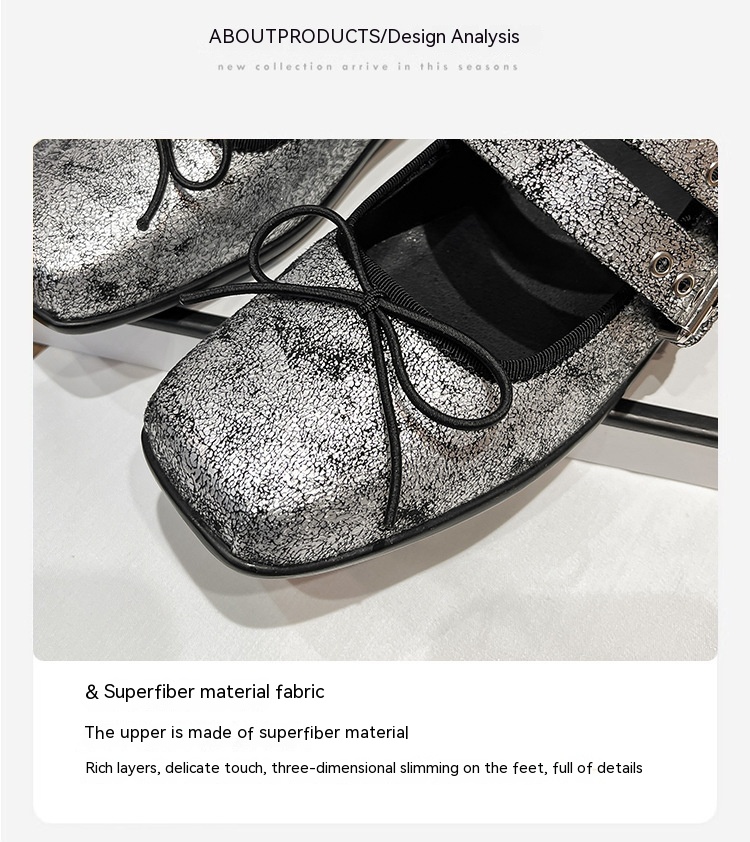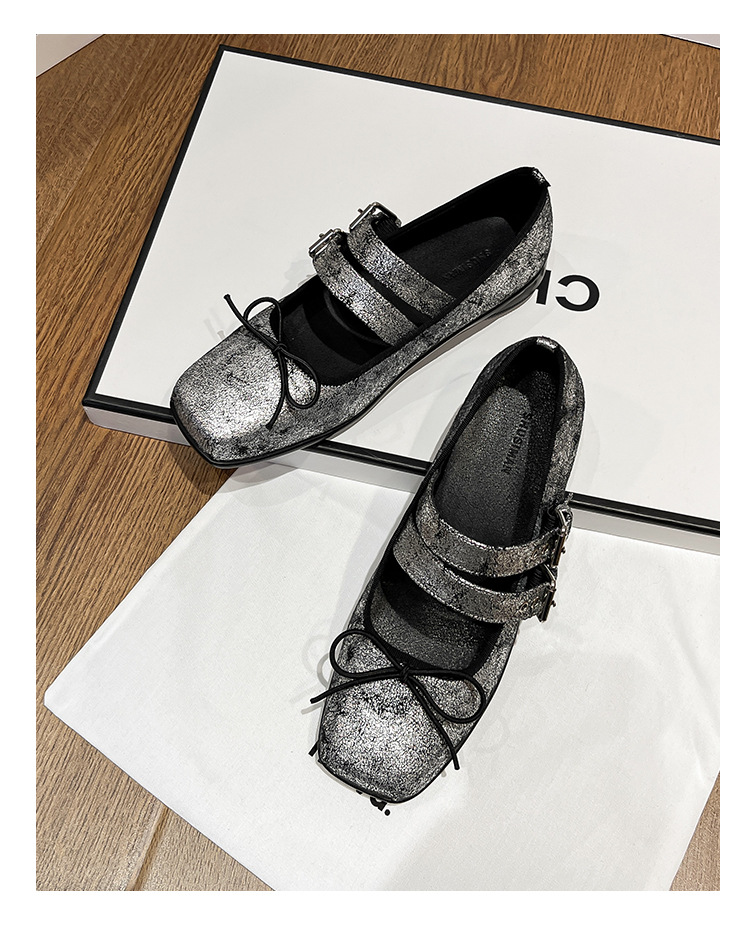 Women's Genuine Leather Silver Mary Jane Shoes Square Toe Vintage Flat Shoes
