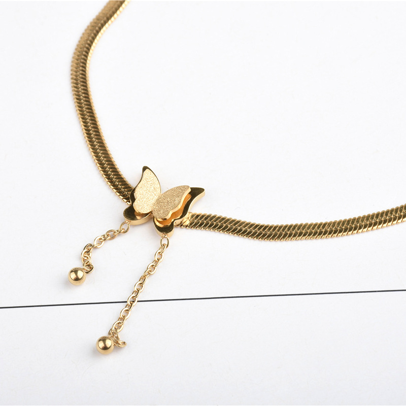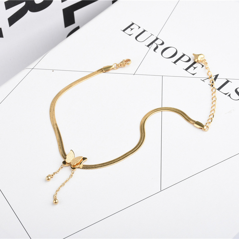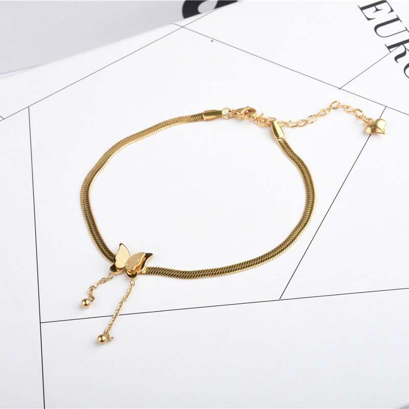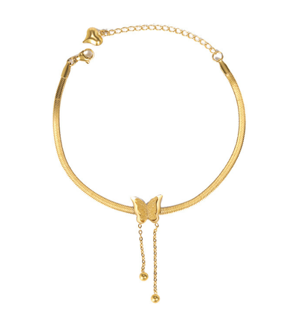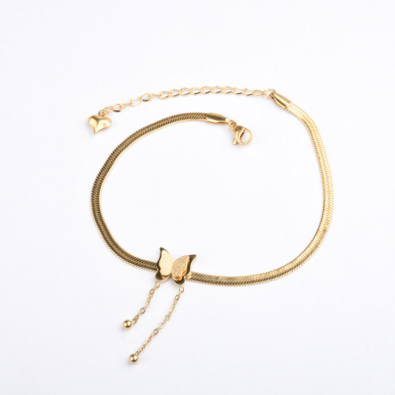 Women's Gold Titanium Steel Tassel Beanie Butterfly Anklet