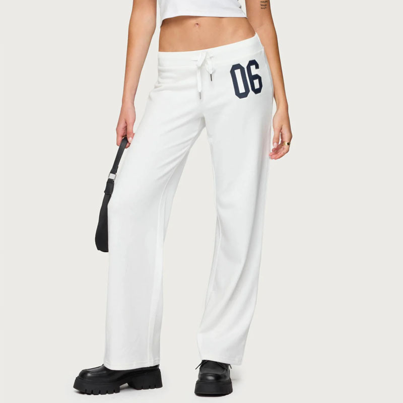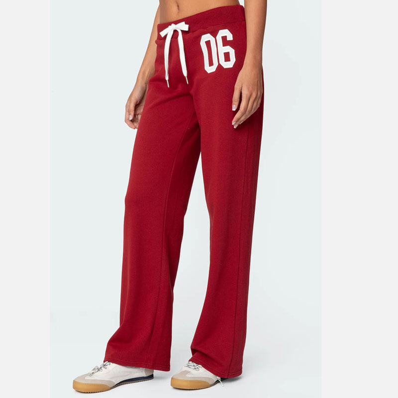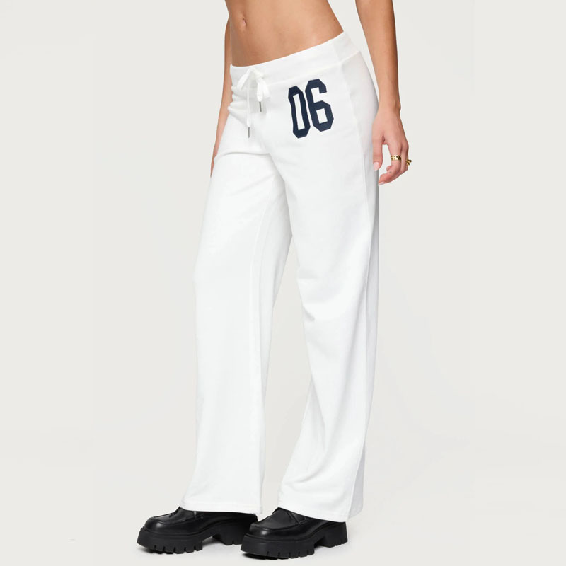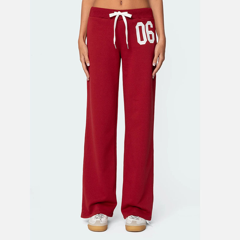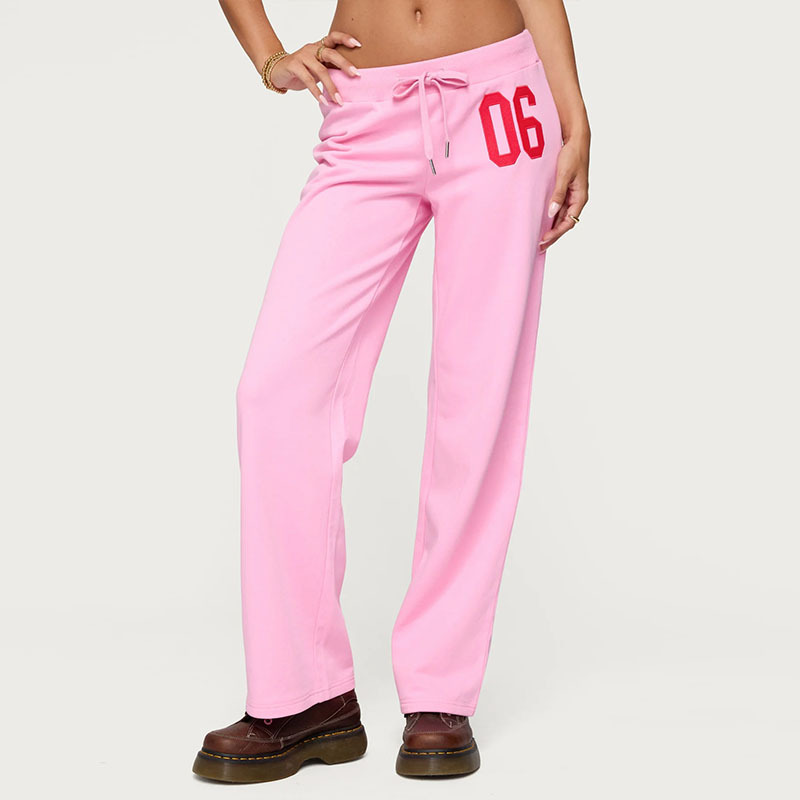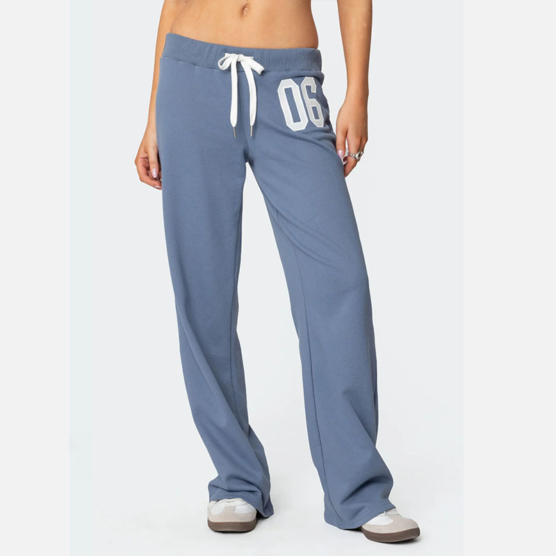 Womens Gray Loose-Fit Drawstring Pants With Letter Embroidery