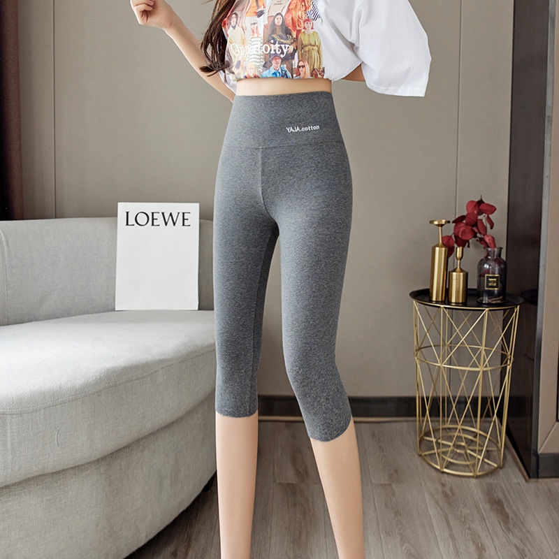 Colors: Black solid-color high-waist capri pants (sold individually), light gray solid-color high-waist capri pants (sold individually), dark gray solid-color high-waist capri pants (sold individually)