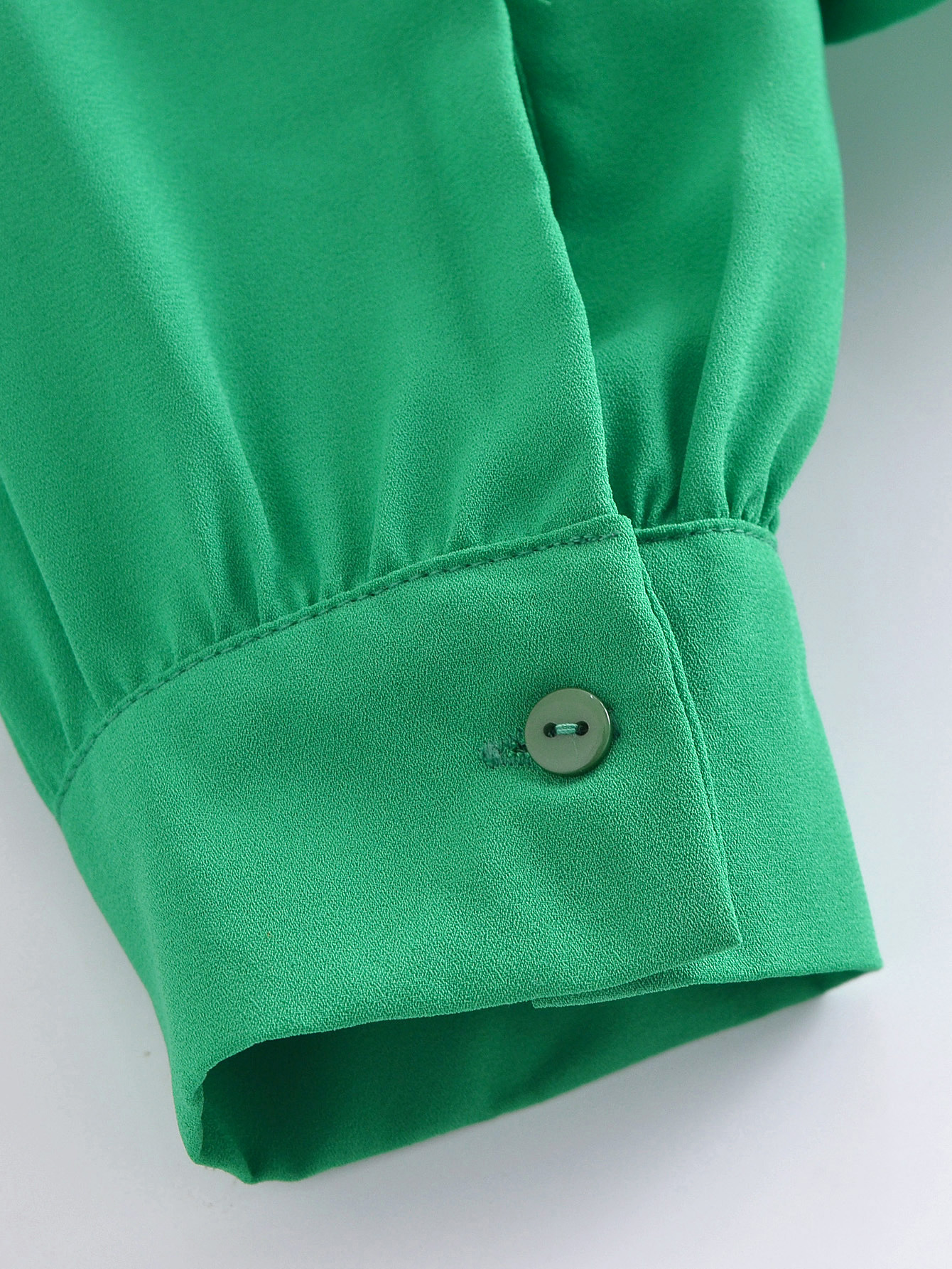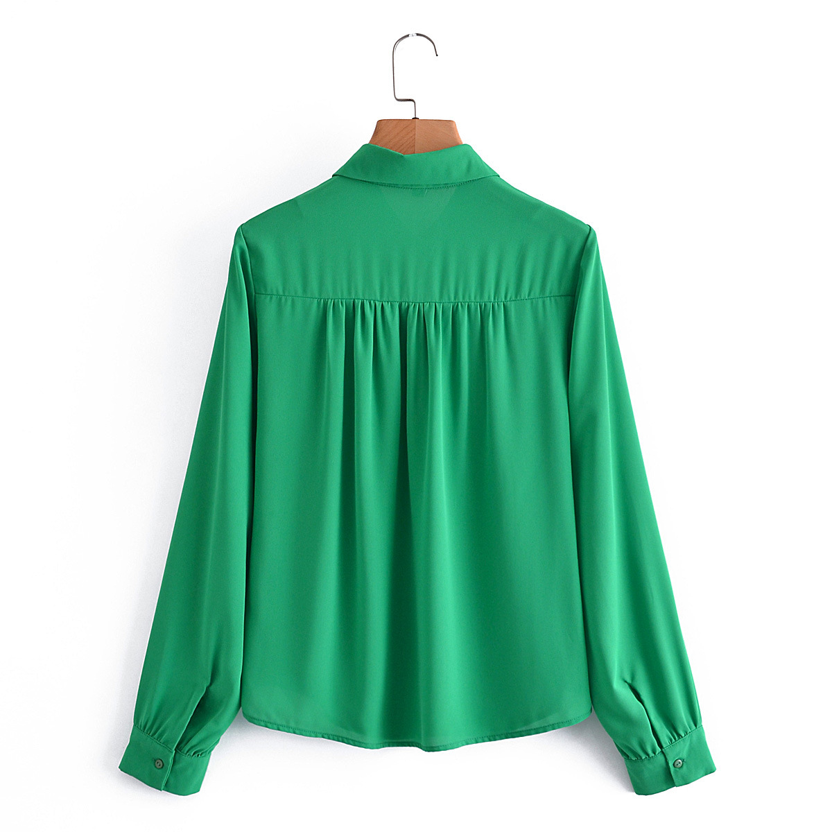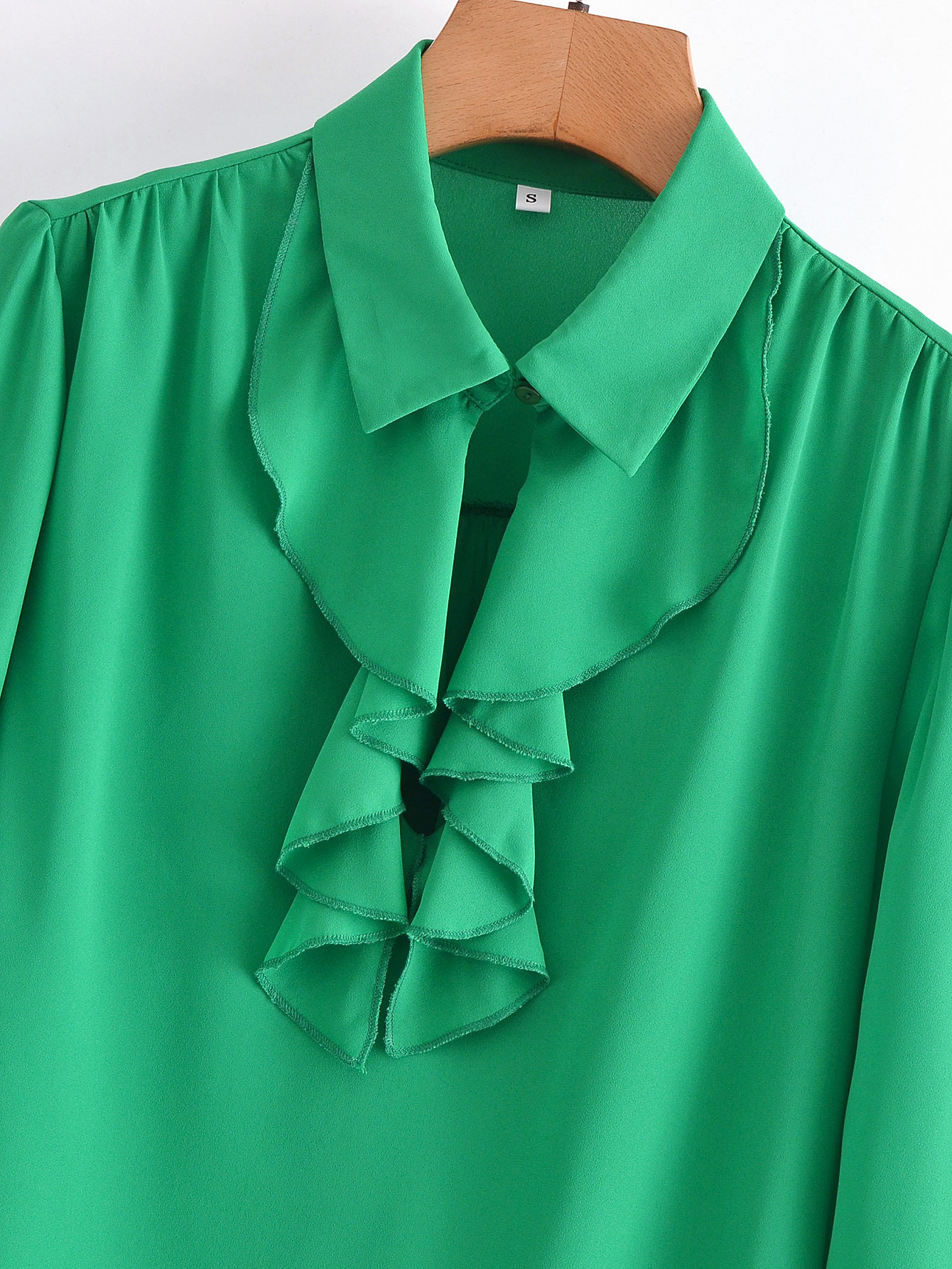 Women's Green Ruffled Lapel Long Sleeve Shirt