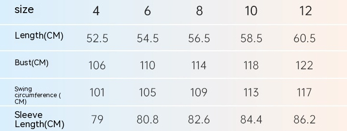 Size: 4,6,8,10,12