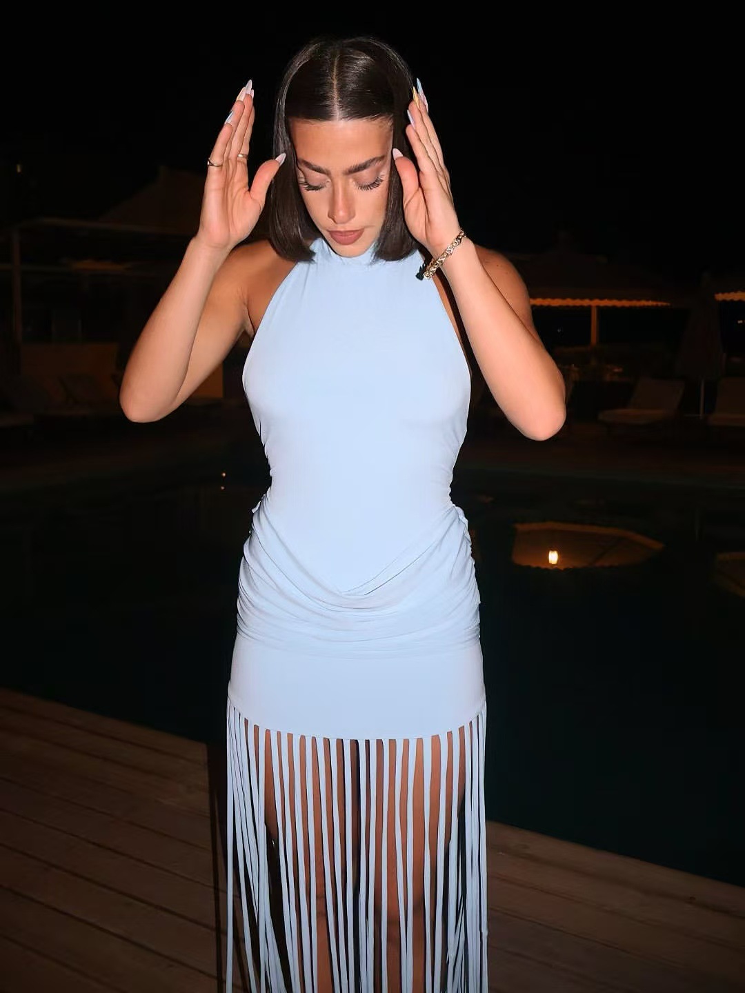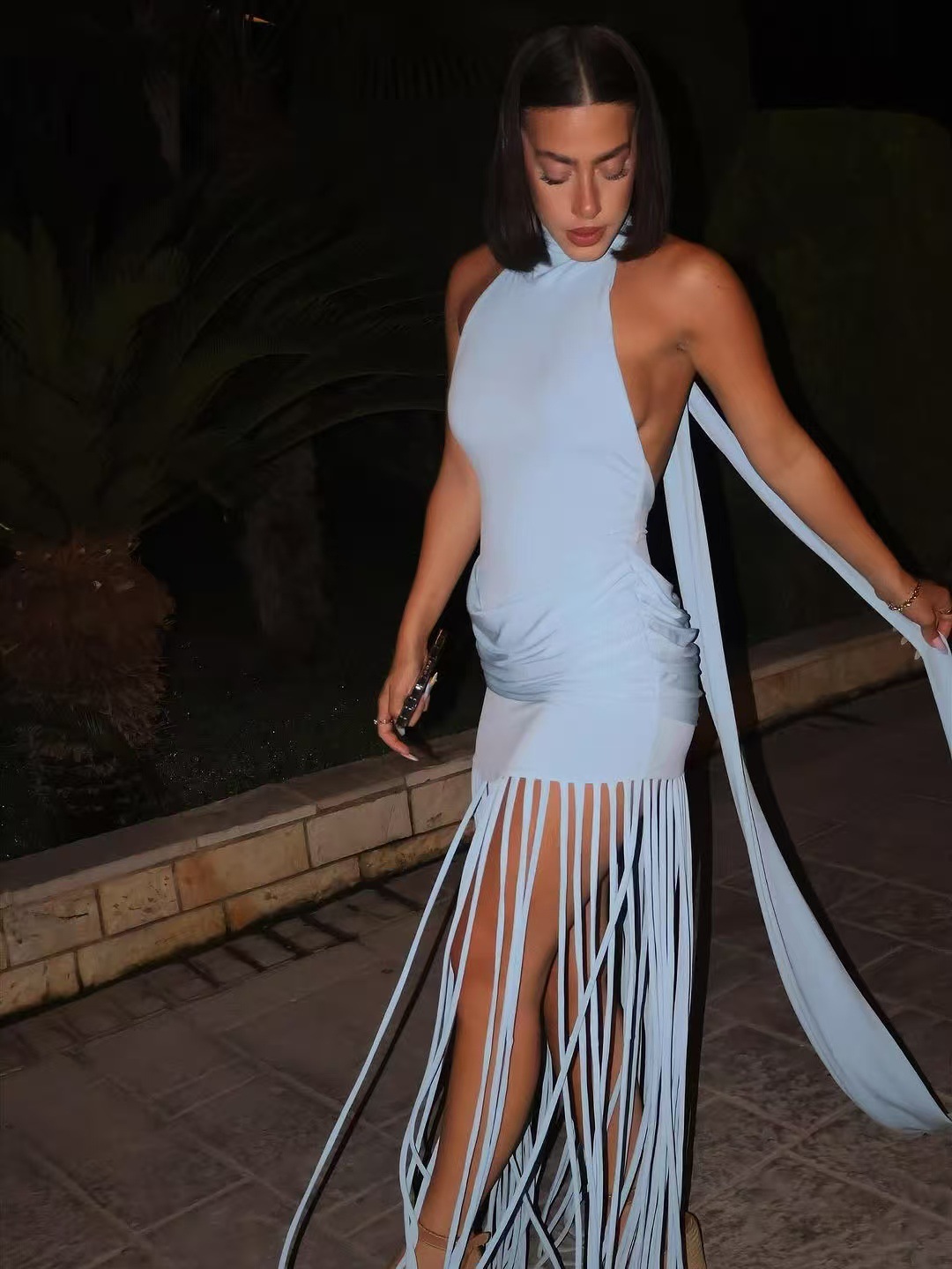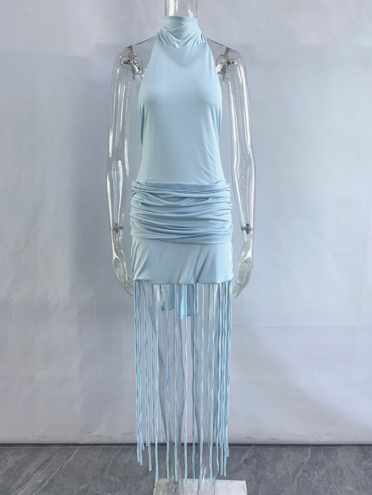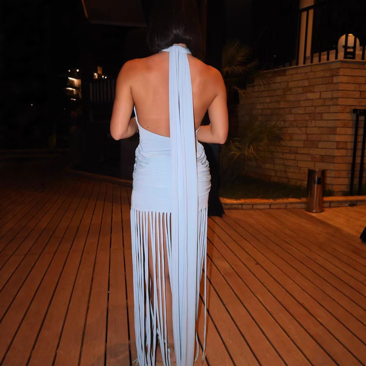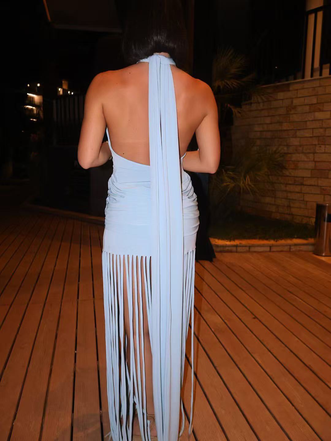 Womens Halterneck Backless Fringe Sexy Bodycon Dress