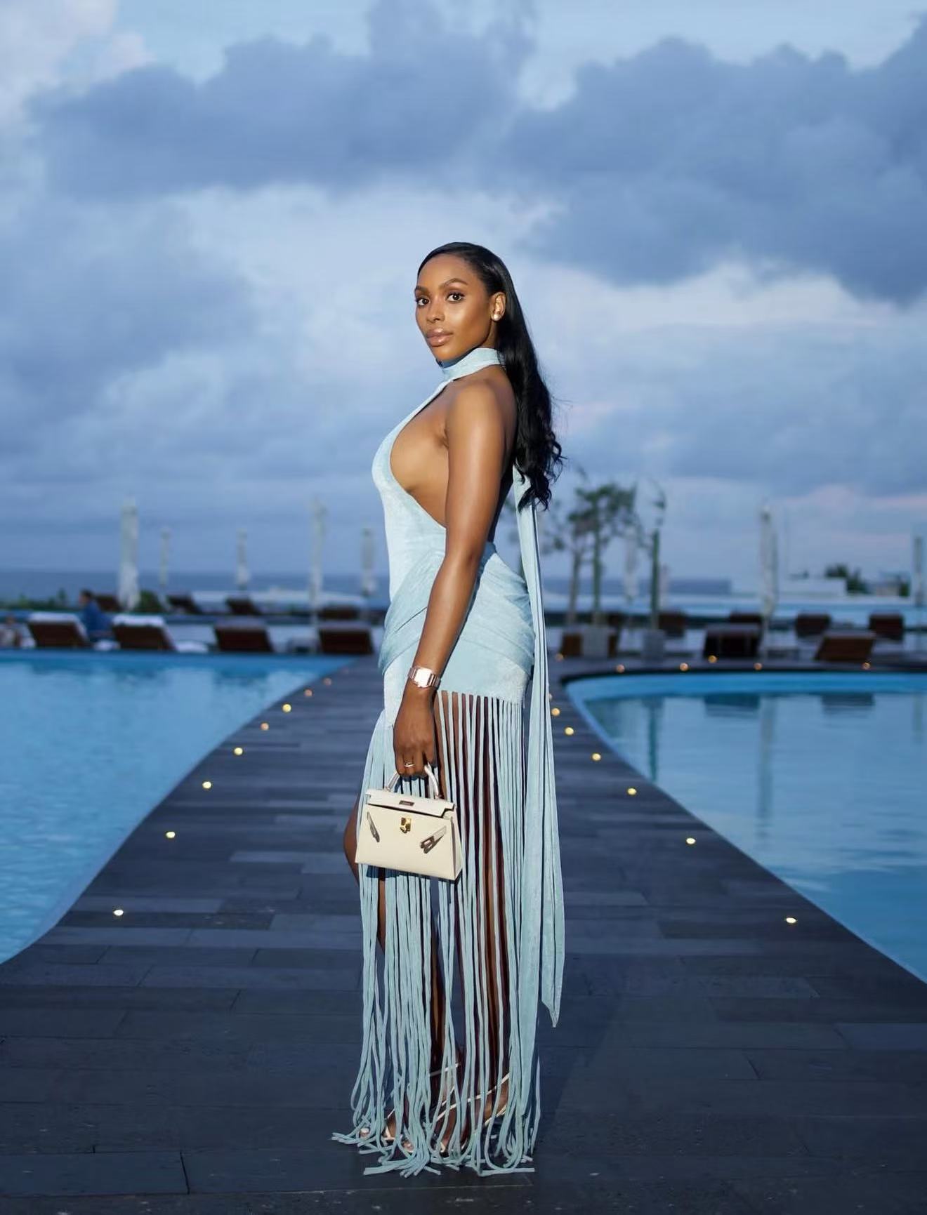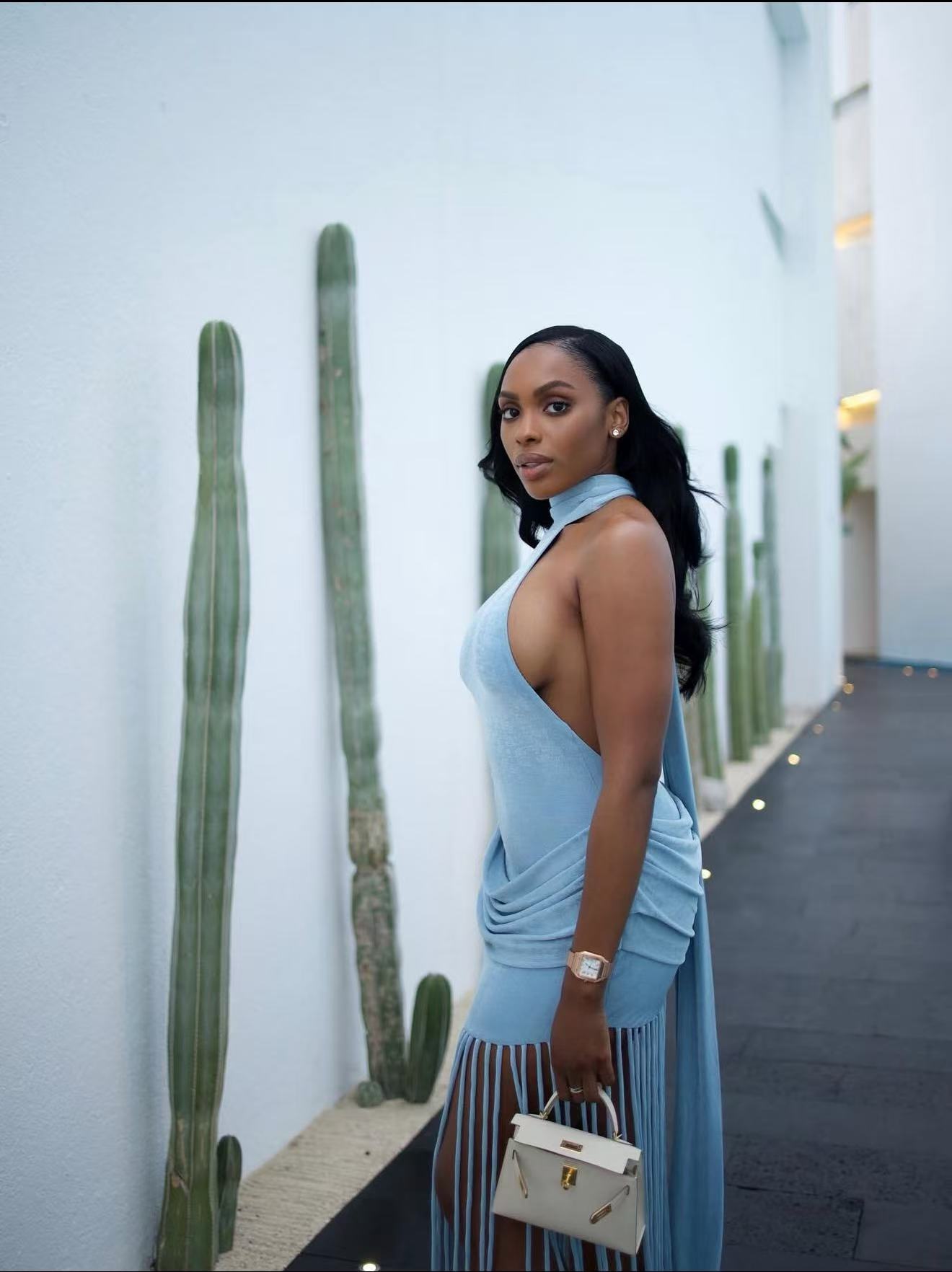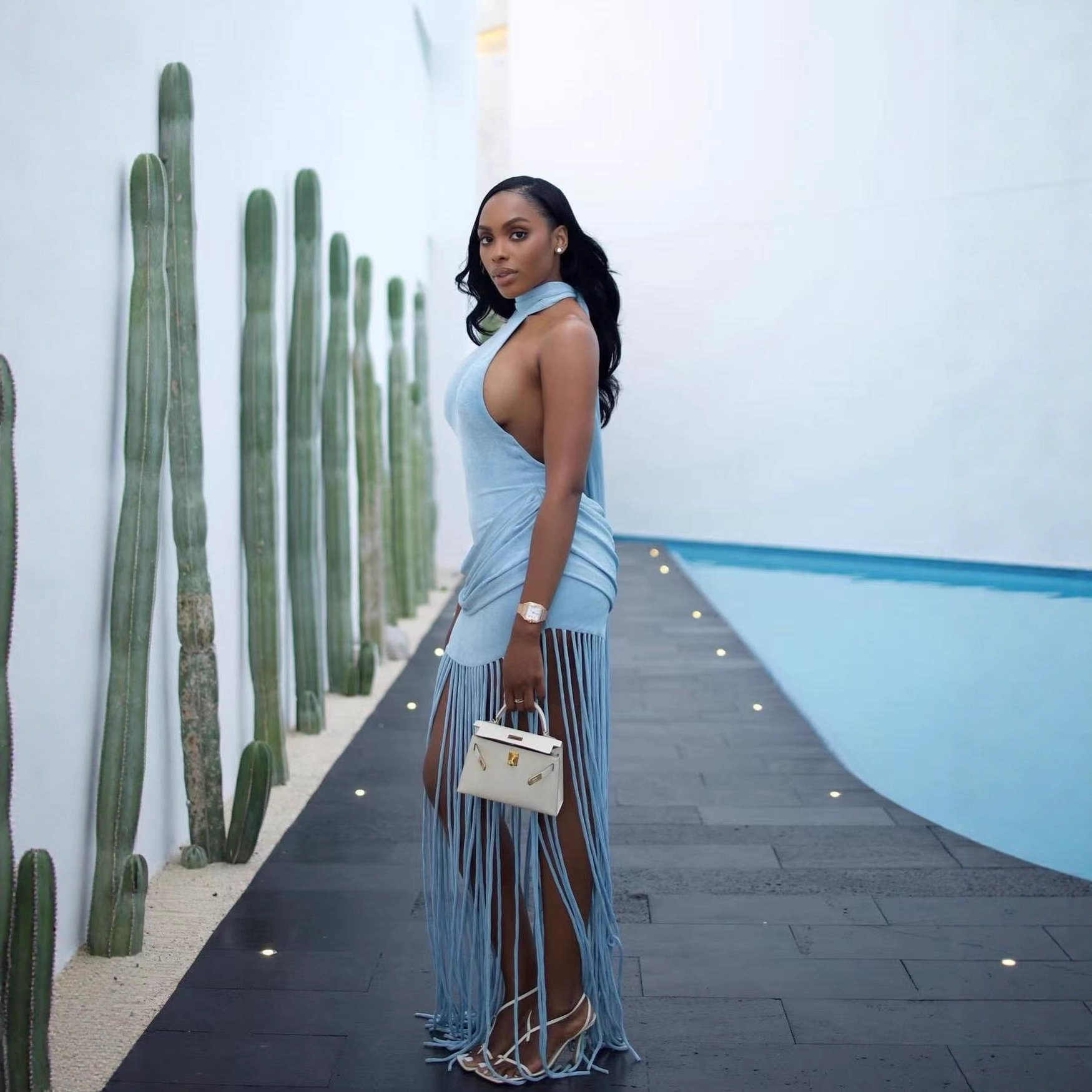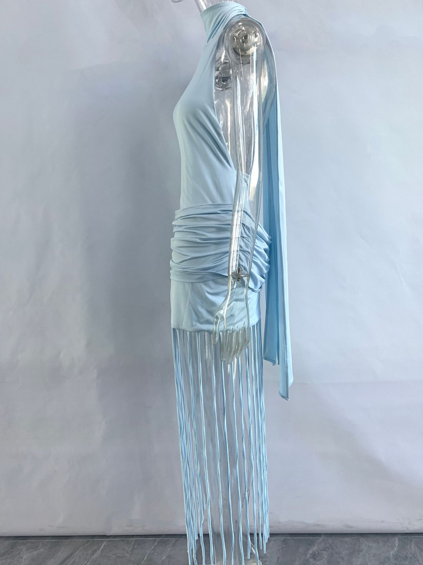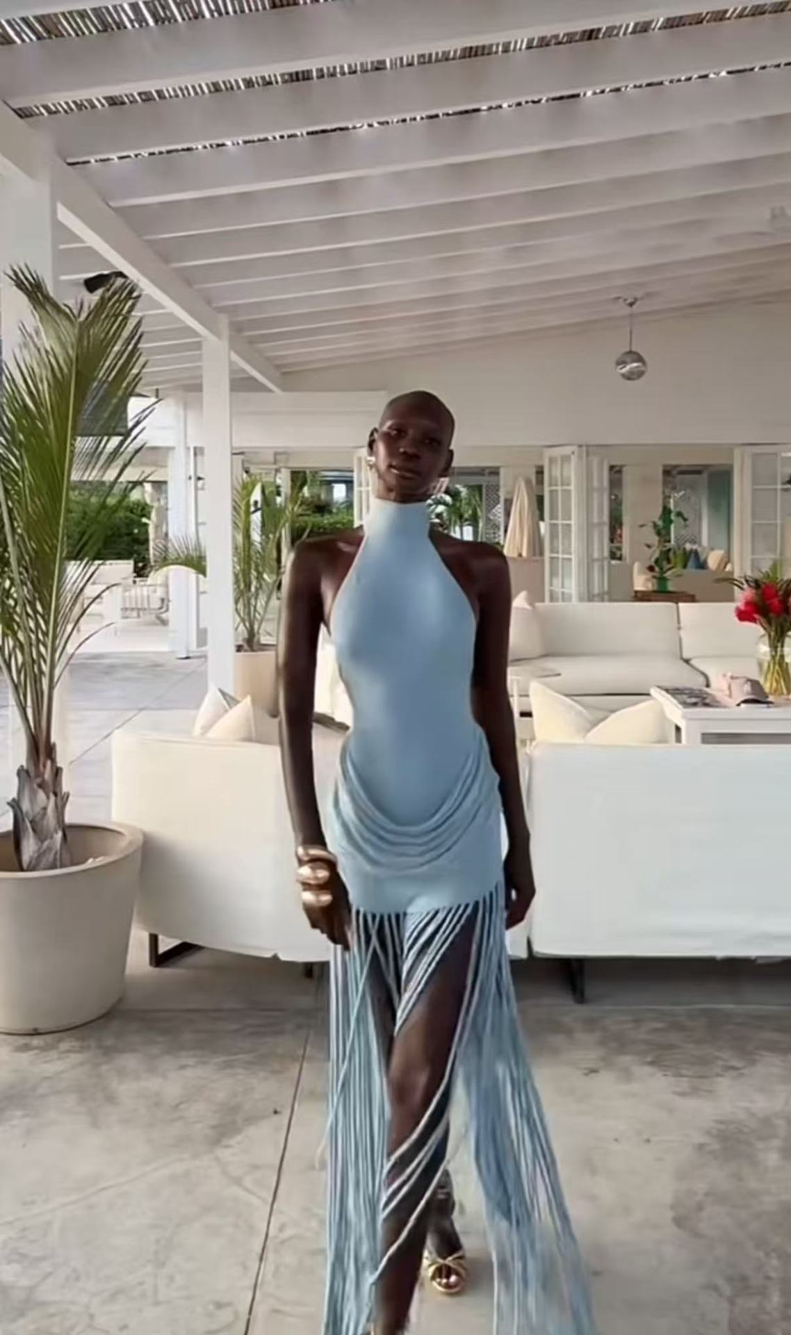 Womens Halterneck Backless Fringe Sexy Bodycon Dress