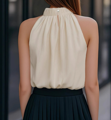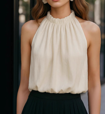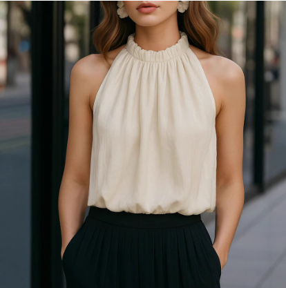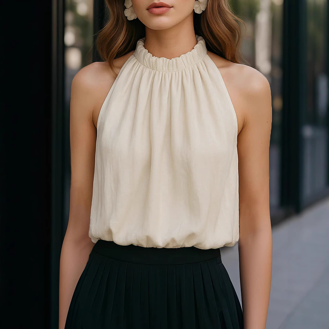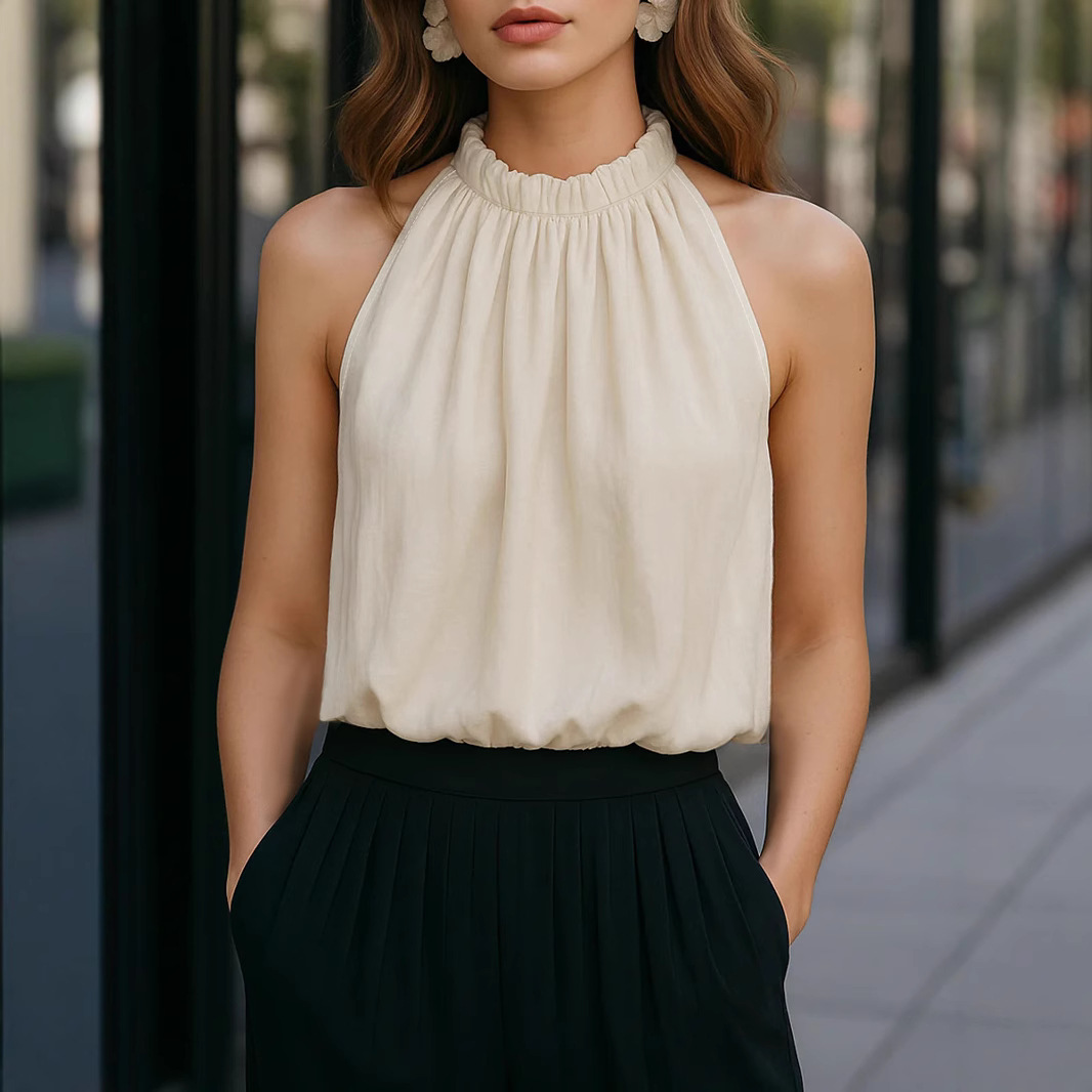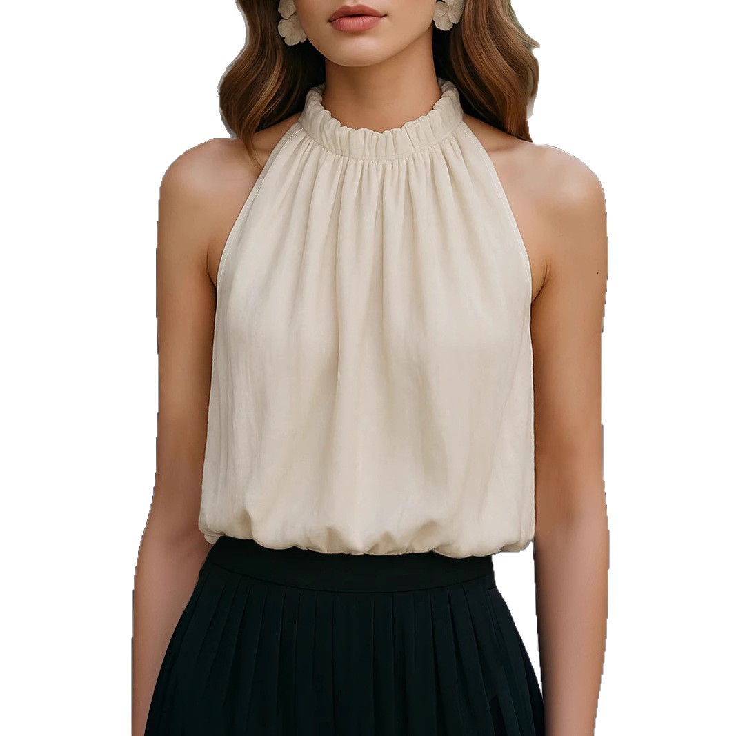 Womens Halterneck Sleeveless Tank Top With Off-the-Shoulder Straps