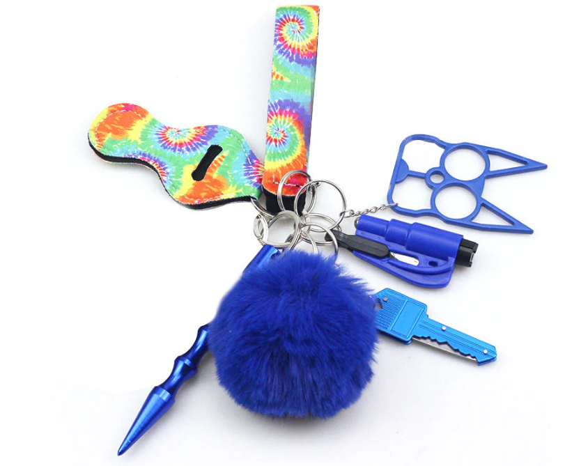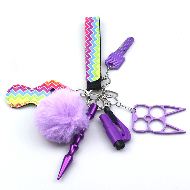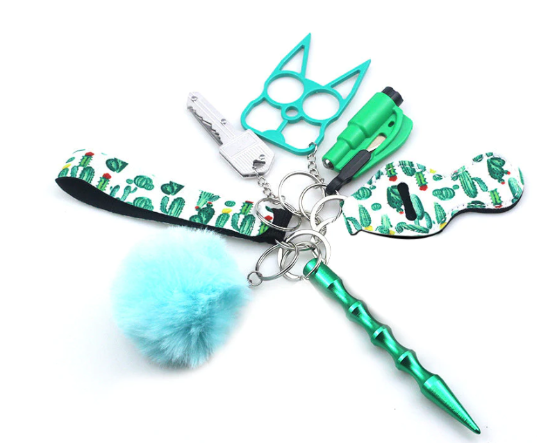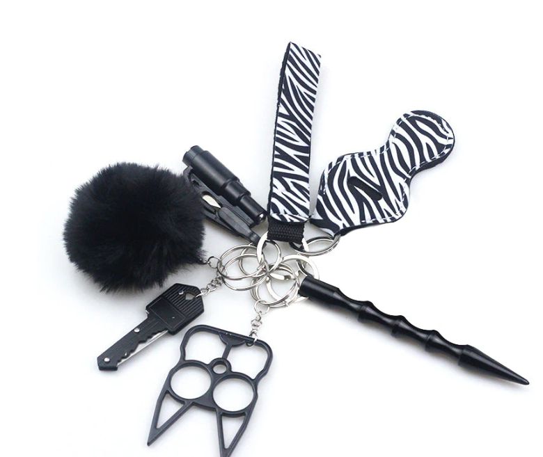 Pompom ball*1Self-defense stick*1Key knife *1Window breaker*1,Cat head double finger snap*1