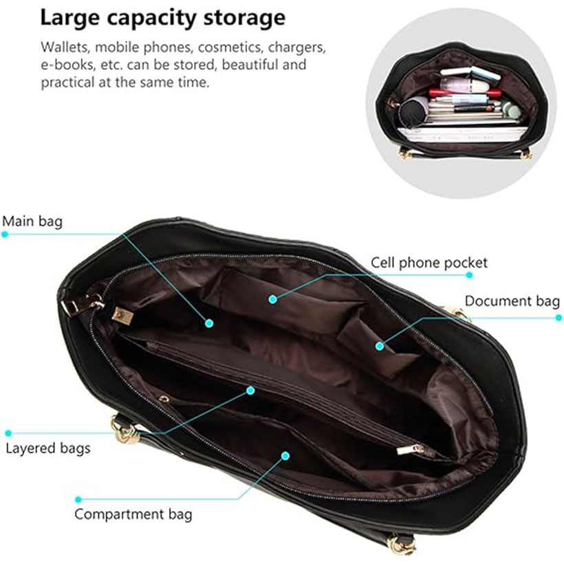 Large Capacity Storage: The interior is scientifically partitioned, and the main bag can accommodate personal items such as tablets, umbrellas, cosmetics, etc. The side hidden pockets and zipper compartments are designed for orderly storage of small items such as wallets and keys.