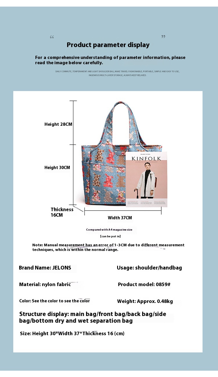 Women's Handbag Nylon Cloth Korean Cute Printed Shoulder Bag Casual Large Capacity