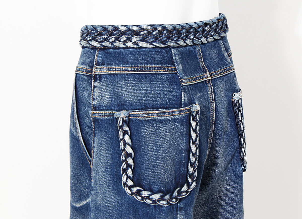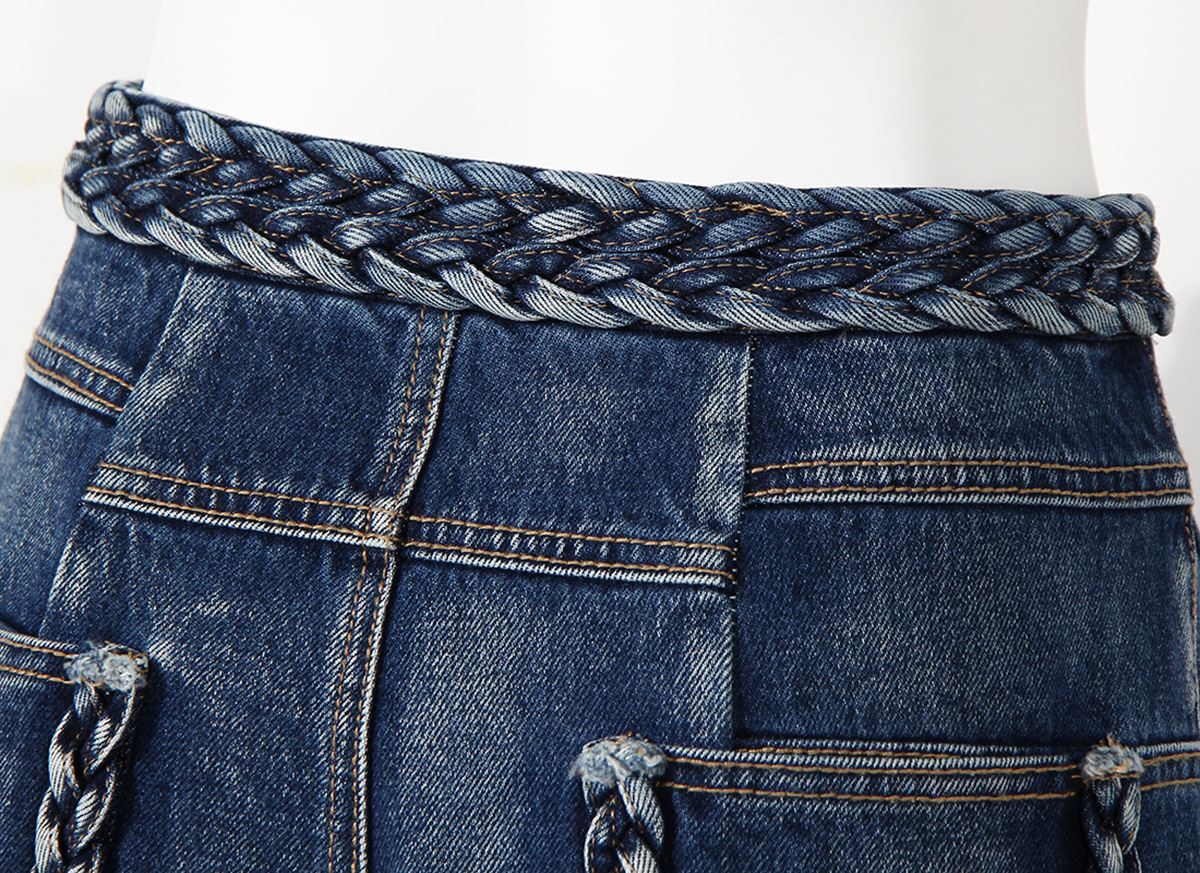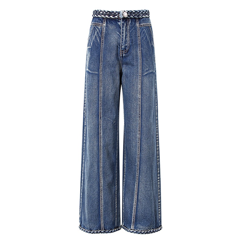Women's Handmade Braided Wide Leg Jeans