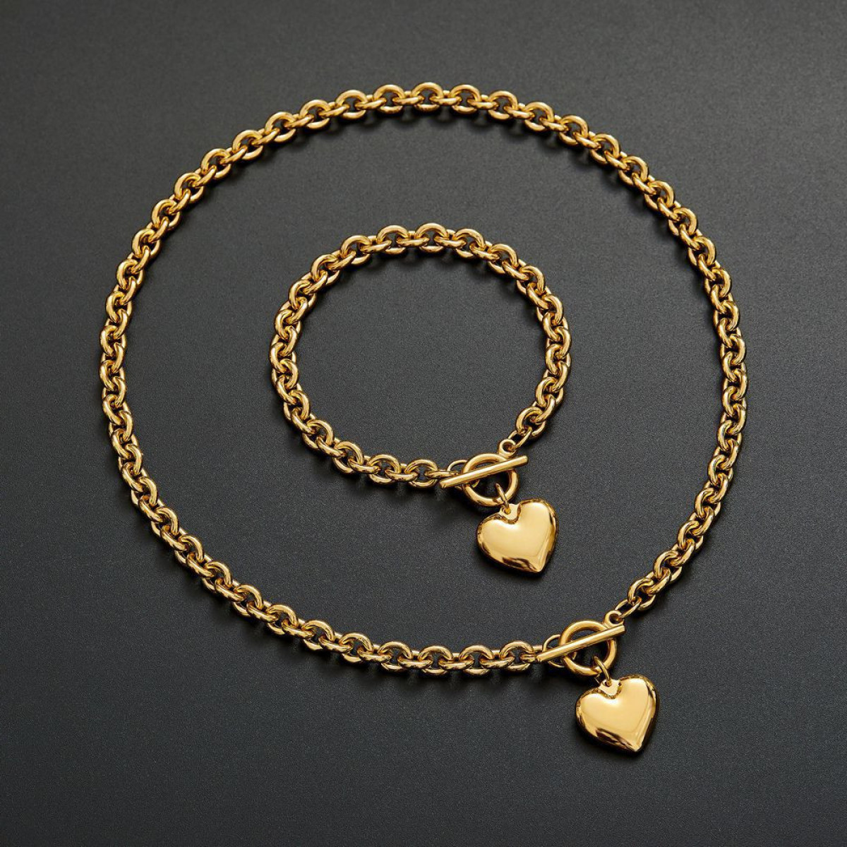 Color: Silver necklace and bracelet set, gold necklace and bracelet set