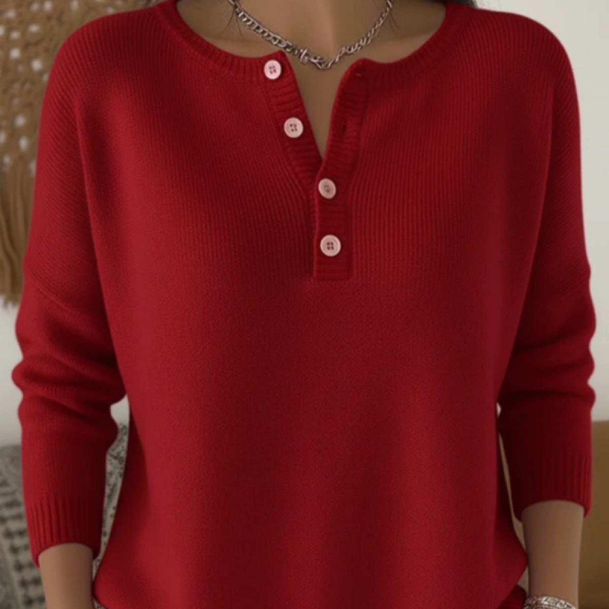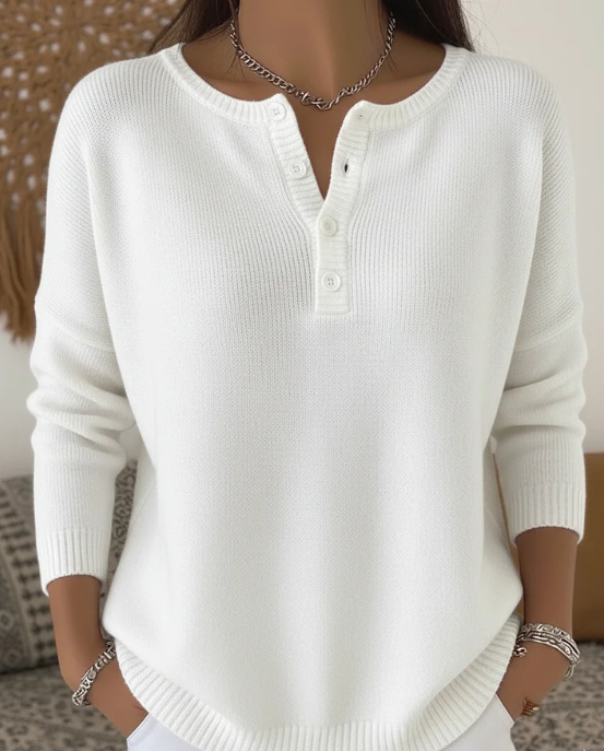 Women's Henley Neck Solid Color Sweater Top