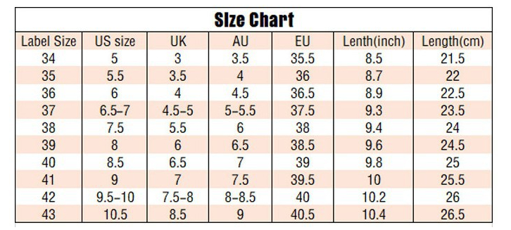 Size: 34, 35, 36, 37, 38, 39, 40, 41, 42, 43
