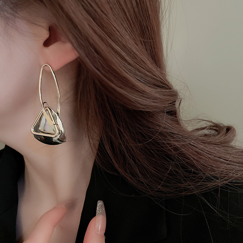 Women's High-End Metallic Hollow Triangle Silver Stud Earrings