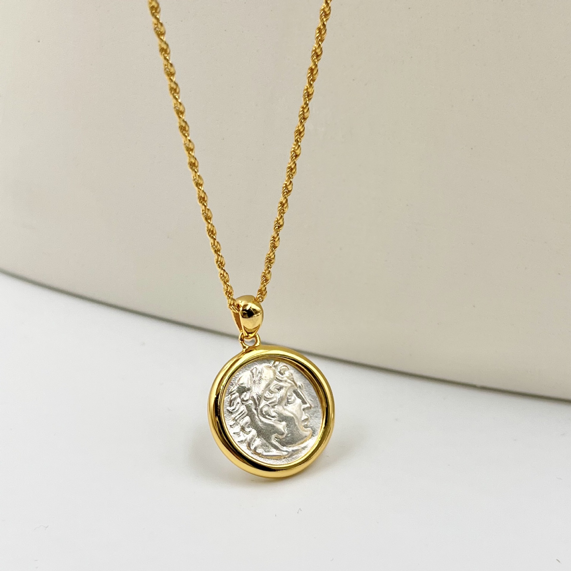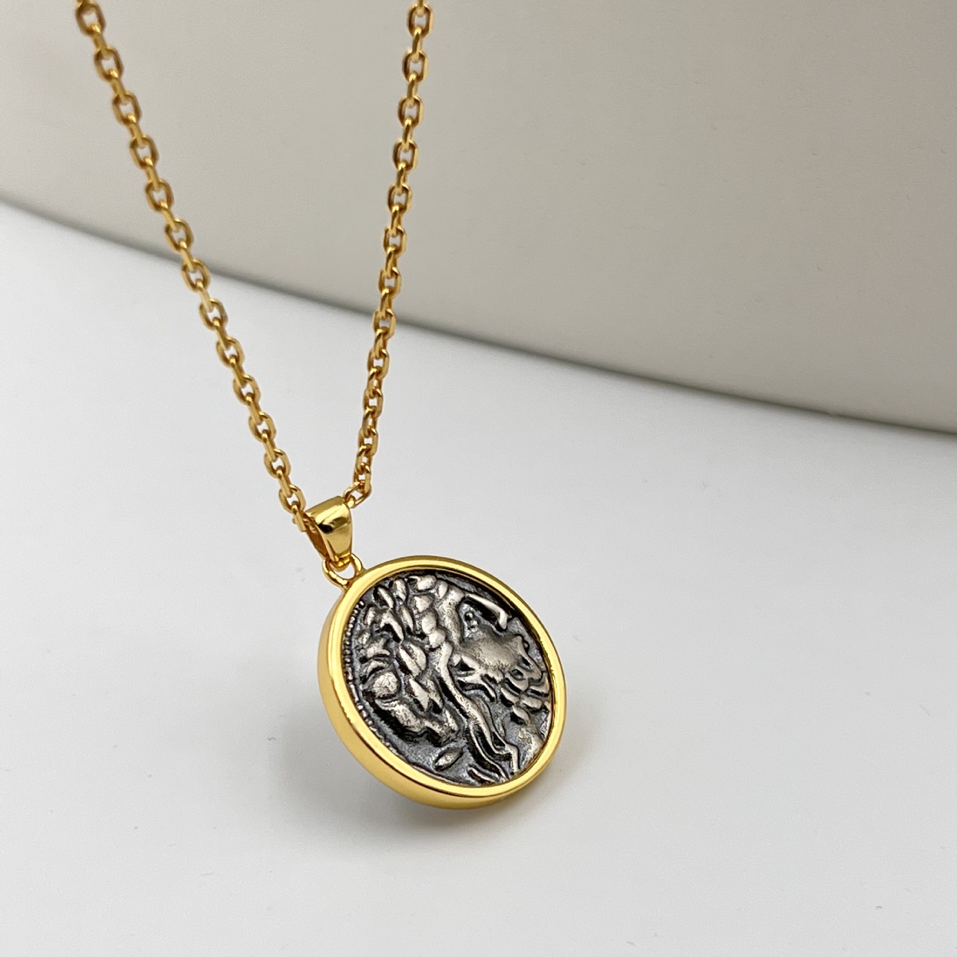 Color: white gold antique coin, black antique coin