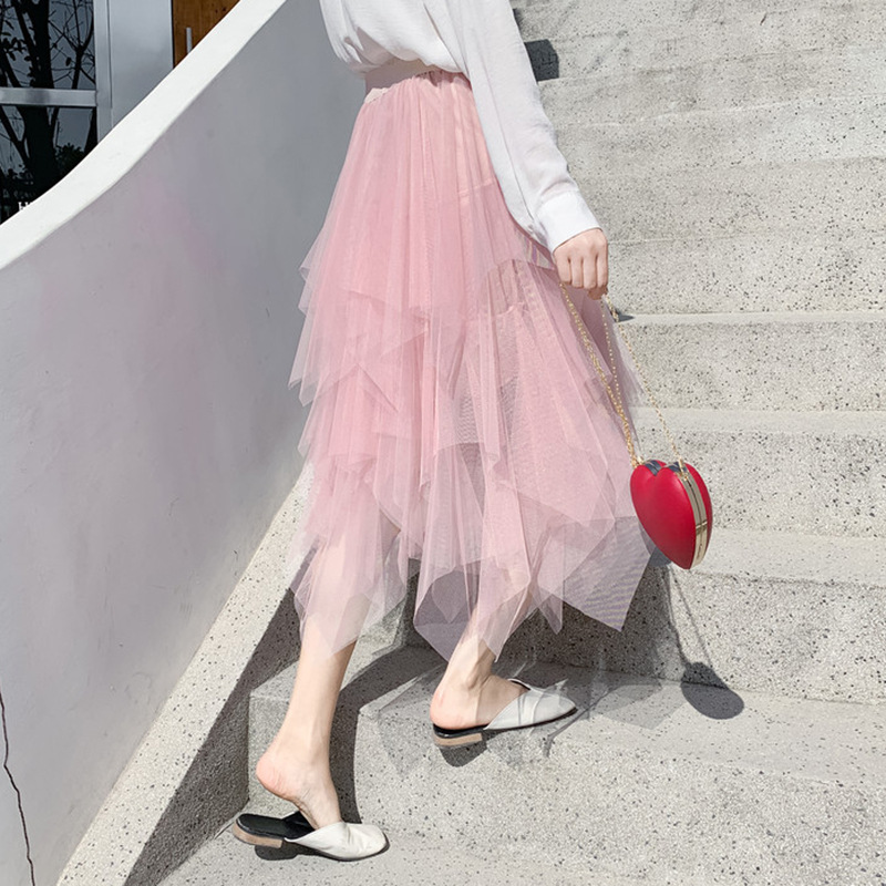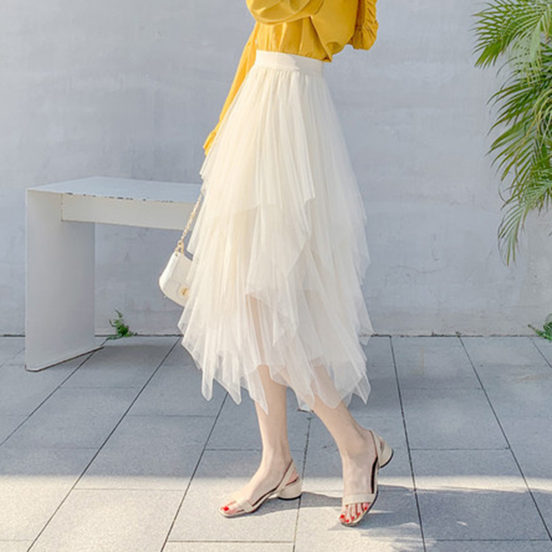 Women's High Waist Irregular Gauze Skirt