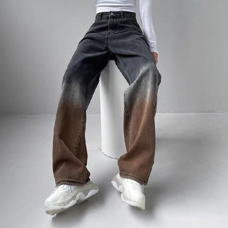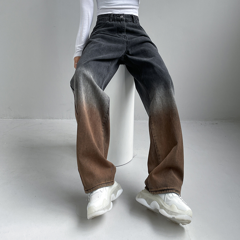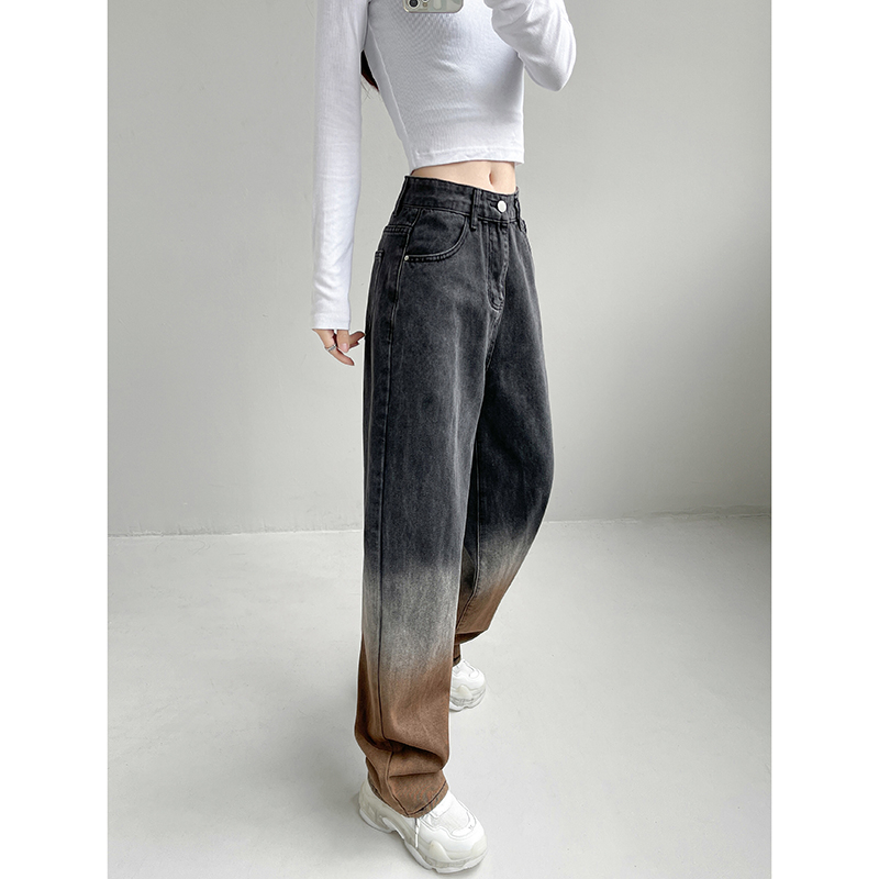 Women's High Waist Loose Gradient Straight Jeans