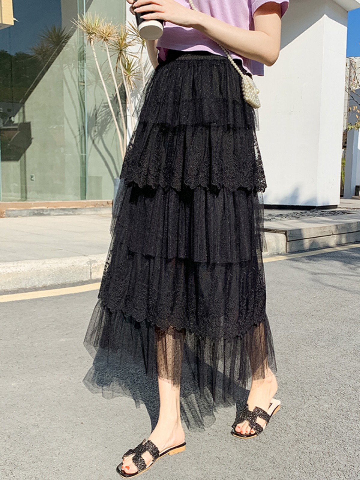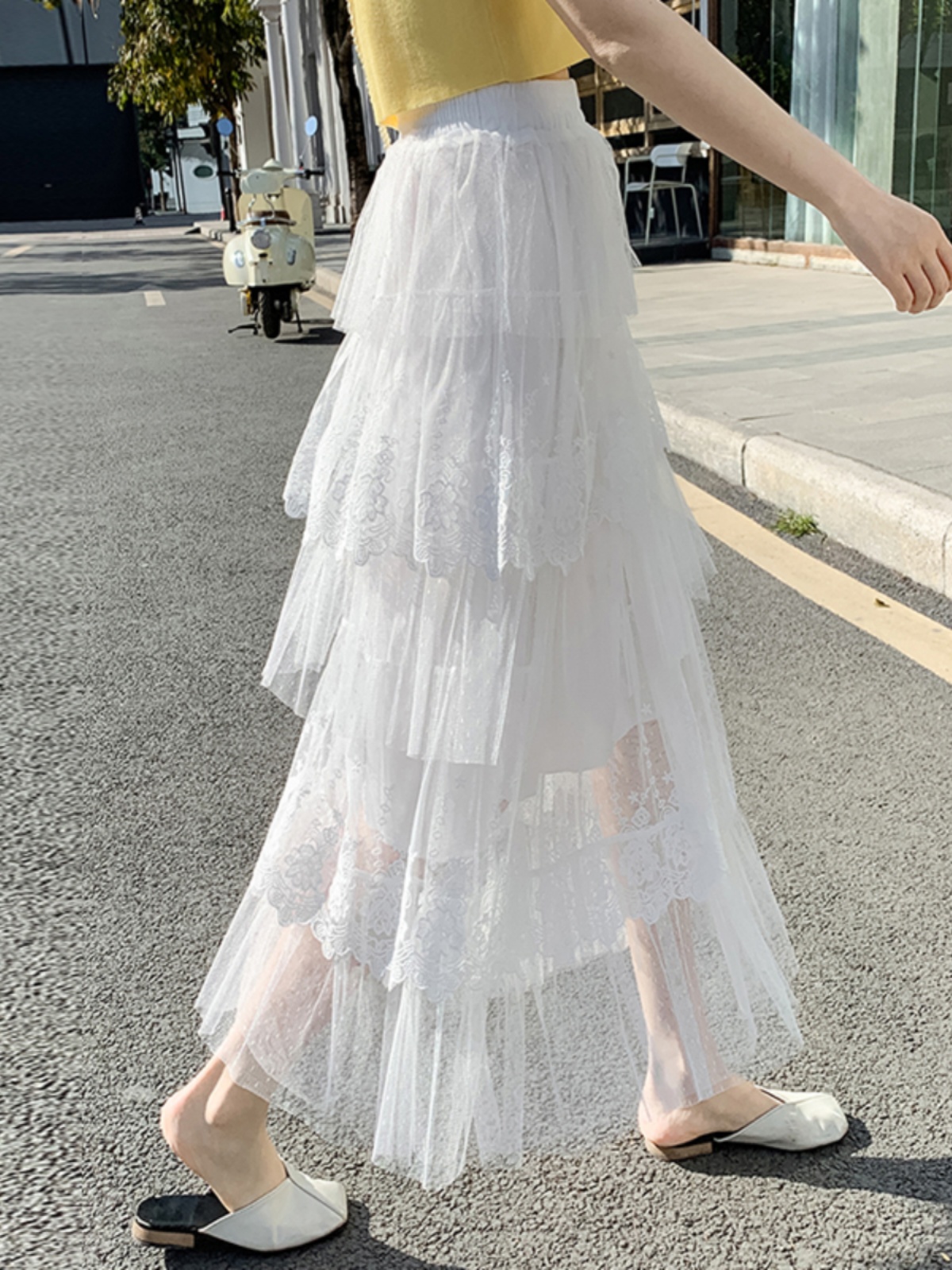 Women's High Waist Mesh Tiered Skirt